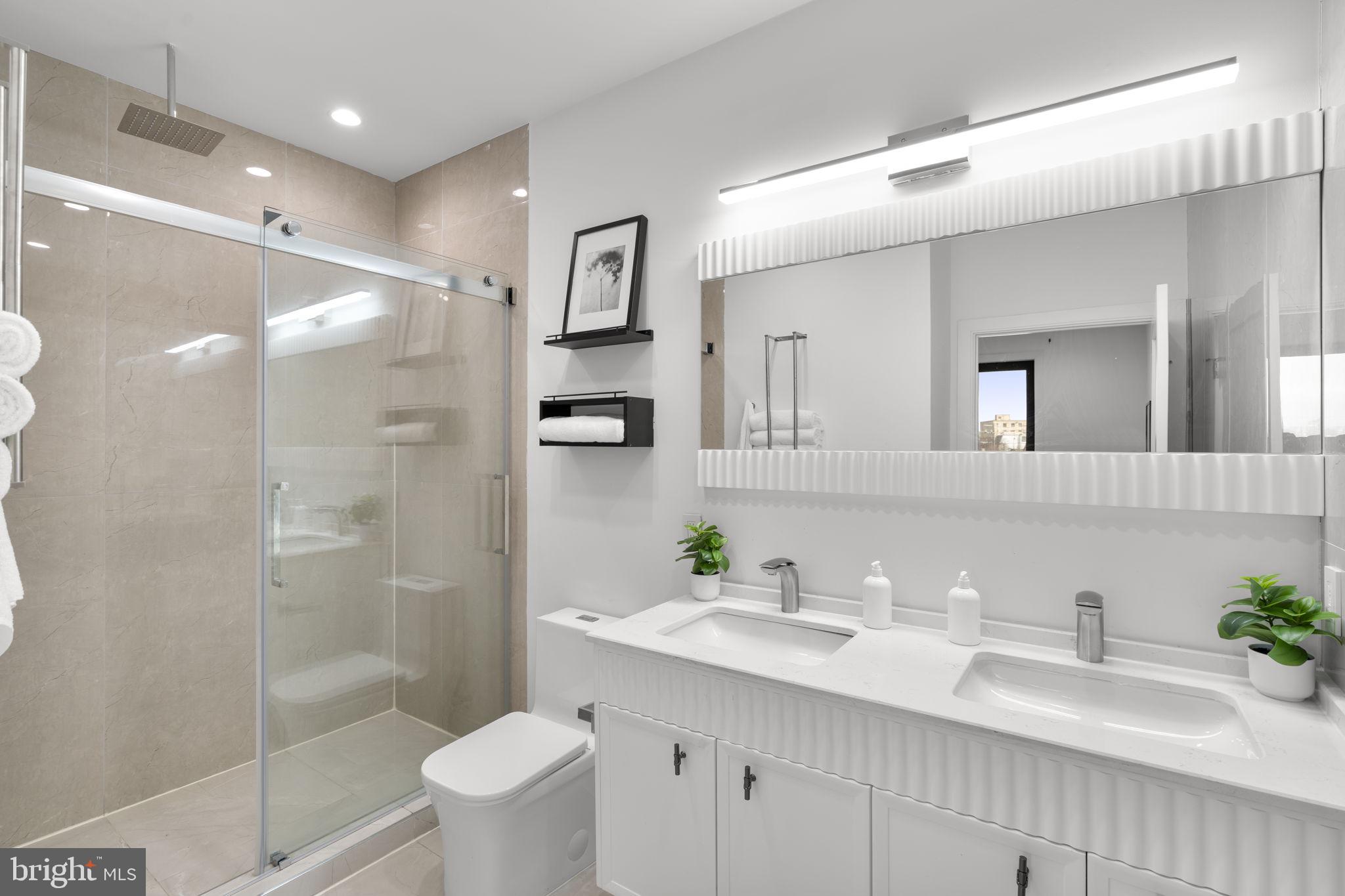 Clean lines and thoughtful finishes carry throughout the home, while the bedrooms provide a serene retreat highlighted by dramatic accent walls, oversized windows, and spa-inspired bathrooms with modern vanities and glass-enclosed showers.