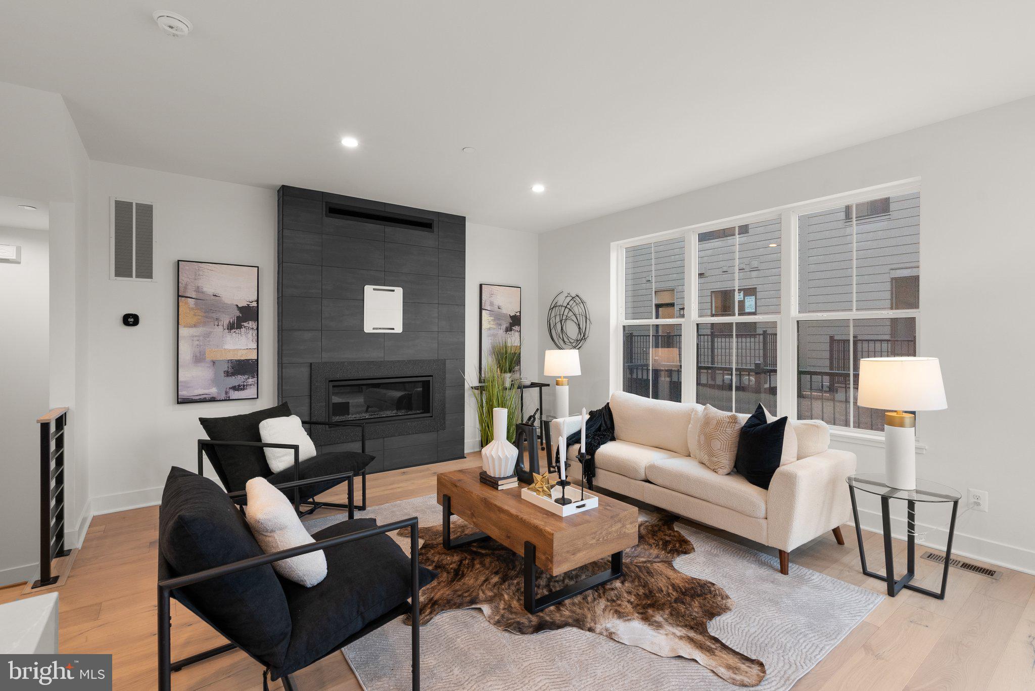 The main level stuns with windows on three sides, an upgraded linear gas fireplace with a sleek stone wall. Dramatic waterfall-edge quartz island to anchor the gourmet kitchen--complete with top-of-the-line Bosch appliances, custom-paneled refrigerator and dishwasher, hidden outlets and a separate pantry. Step outside onto your private composite deck for morning coffee or to check the day's weather.