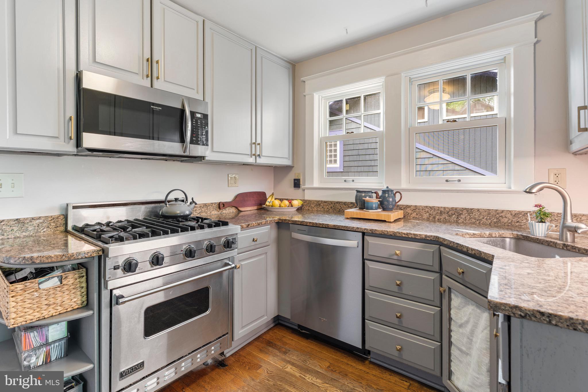The kitchen is both stylish and functional, featuring grey cabinets, granite countertops, high-end stainless steel appliances - including a Viking gas range - and a sunny breakfast nook with river rock flooring that invites slow mornings and good conversation. Upstairs, the private primary suite feels like a retreat, with brand-new carpet and a spa-like bath featuring a German-crafted wood soaking tub. The lower level is partially finished with exterior access, ideal as a fourth bedroom, home office, or rec room, with additional space ready for your vision.
