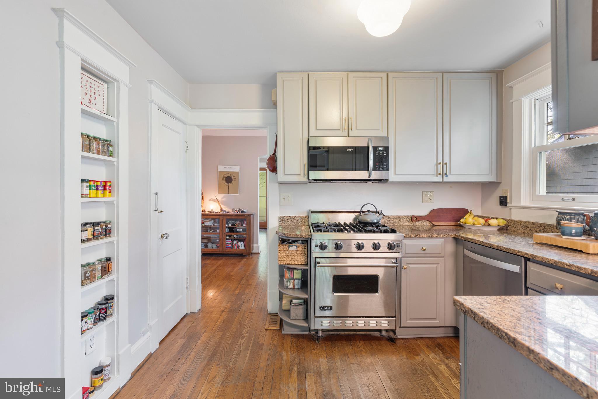 The architectural gem of a copper standing seam roof and matching gutters adds to the home's enduring beauty and craftsmanship. The copper roofing, one of the longest-lasting materials available, provides peace of mind for years to come. The windows are carpenter-built wood (not plastic), further enhancing the home's superior quality. The spice shelf and original ironing nook have been updated with integrated historical charm, maintaining the home's unique character.