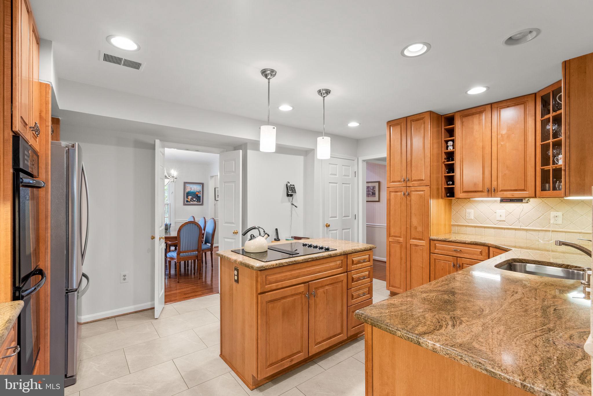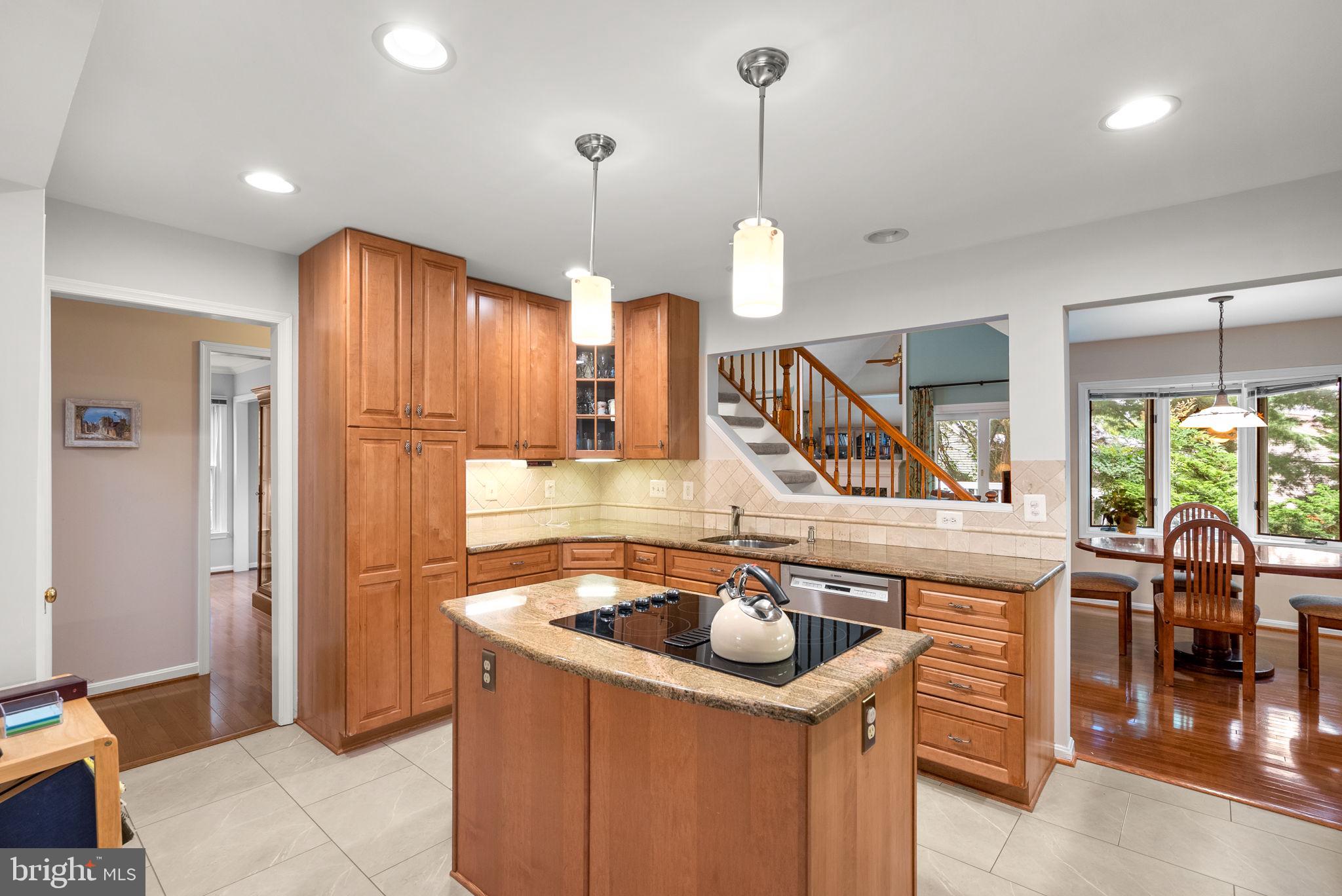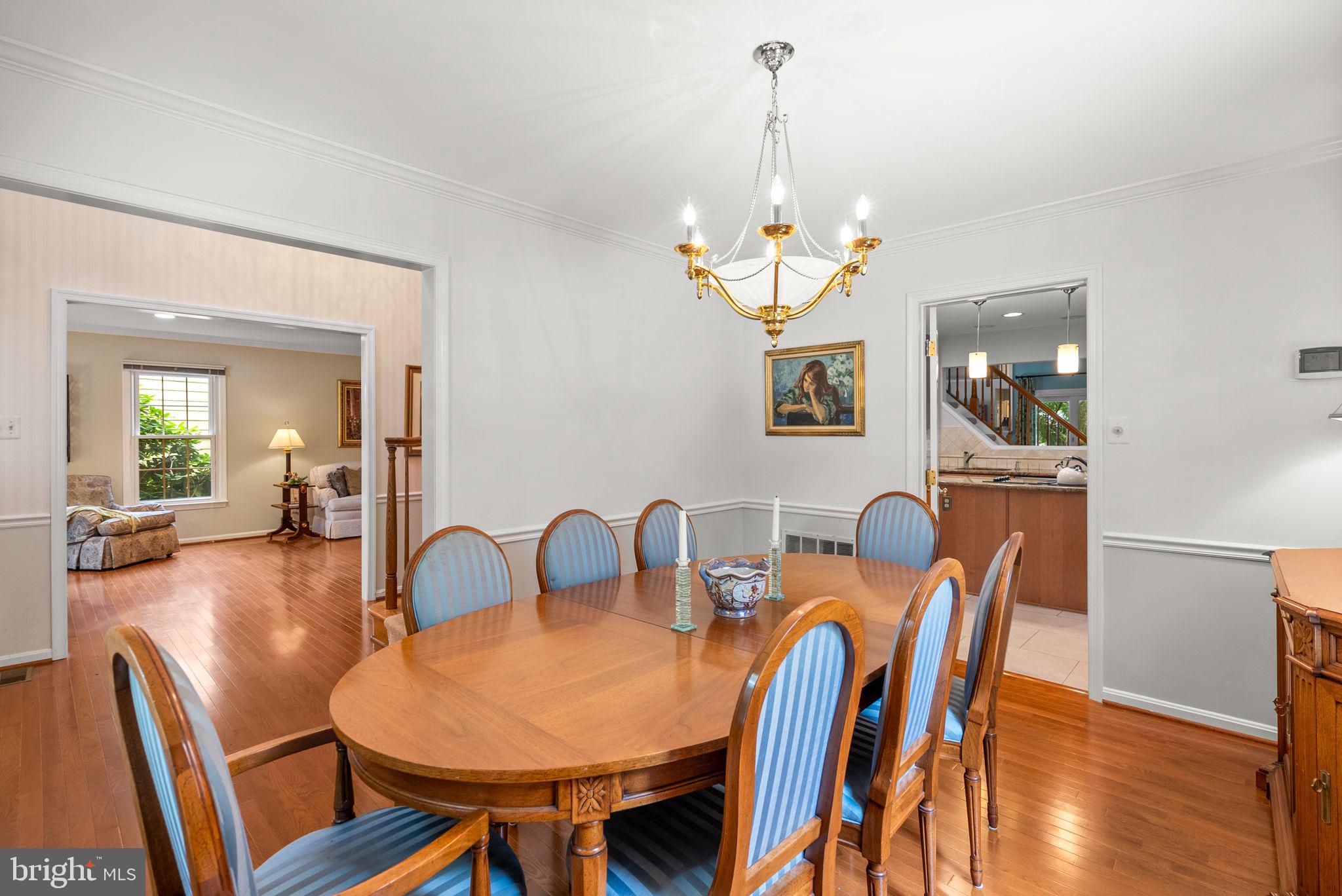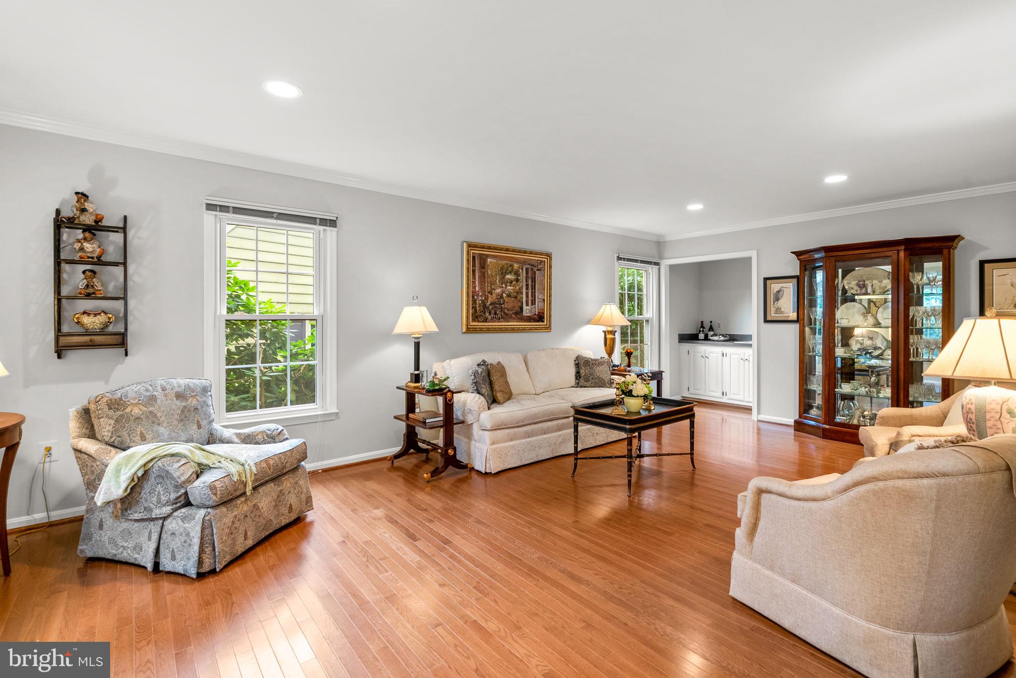 Nestled on a quiet, tree-lined street in the sought-after Washingtonian Woods community, this New England-style home combines timeless charm with modern updates. The traditional floor plan features a welcoming two-story foyer, an embassy-sized living room with crown molding, hardwood floors, and wet bar, and a formal dining room that flows into the renovated Chef's kitchen. The kitchen offers a center island, 42-inch custom cabinetry, stainless steel appliances, and designer granite countertops, opening to a sun-filled breakfast room and a dramatic two-story family room with gas burning fireplace, full window surround, rear staircase, and access to a private custom deck. A spacious mudroom/laundry room provides extra storage, a walk-in closet, and access to the two-car garage.