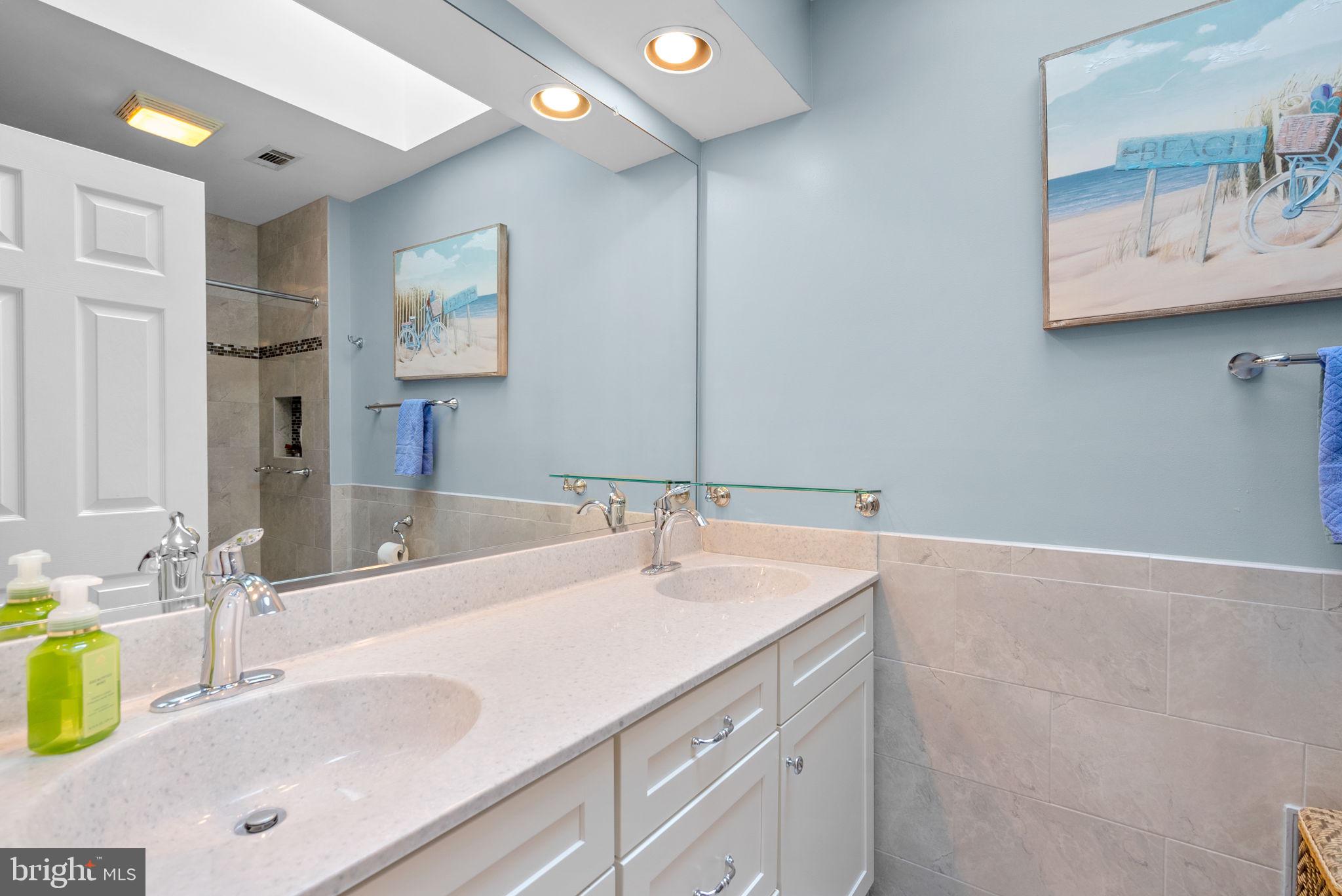 Upstairs, the primary suite boasts extensive closet space and a renovated spa-inspired bath with dual vanities, soaking tub, and separate shower. Three generously sized bedrooms and a skylit renovated hall bath complete the second level. The walkout lower level features a large recreation room with a wet bar, full bath, home office, and storage space.