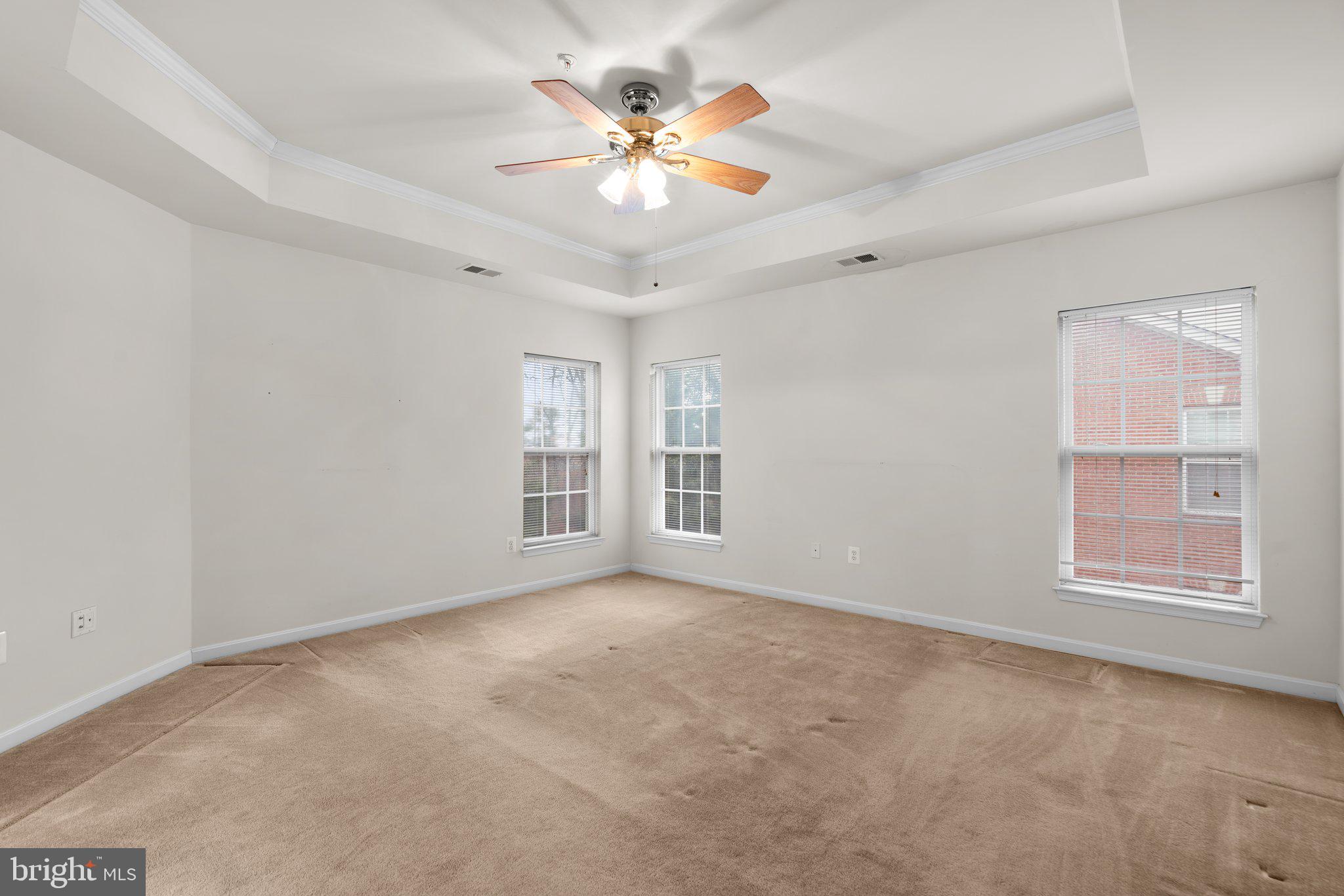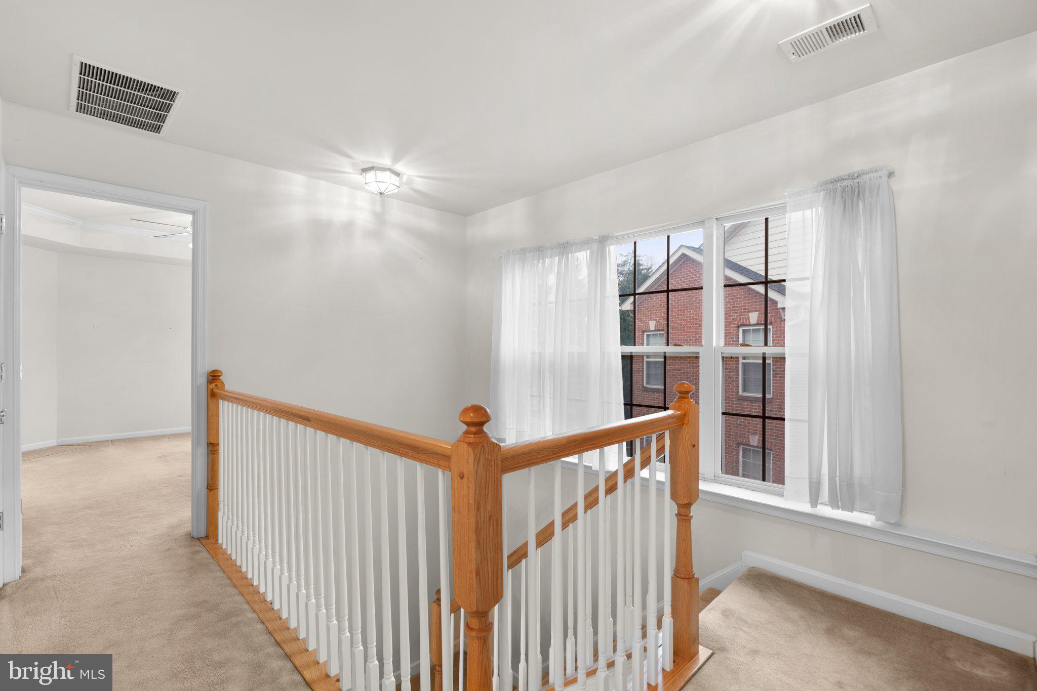 This sun-filled end-unit townhome is situated in a quiet, private court facing open common space and backing to trees, offering a perfect blend of comfort and convenience. The main level features an inviting living room, a formal dining room with elegant details, and a bright kitchen with 42-inch maple cabinetry, modern appliances, a center island, and a cozy breakfast nook. The adjacent family room includes a ceiling fan, custom blinds, and a French door leading to a private deck overlooking lush trees.