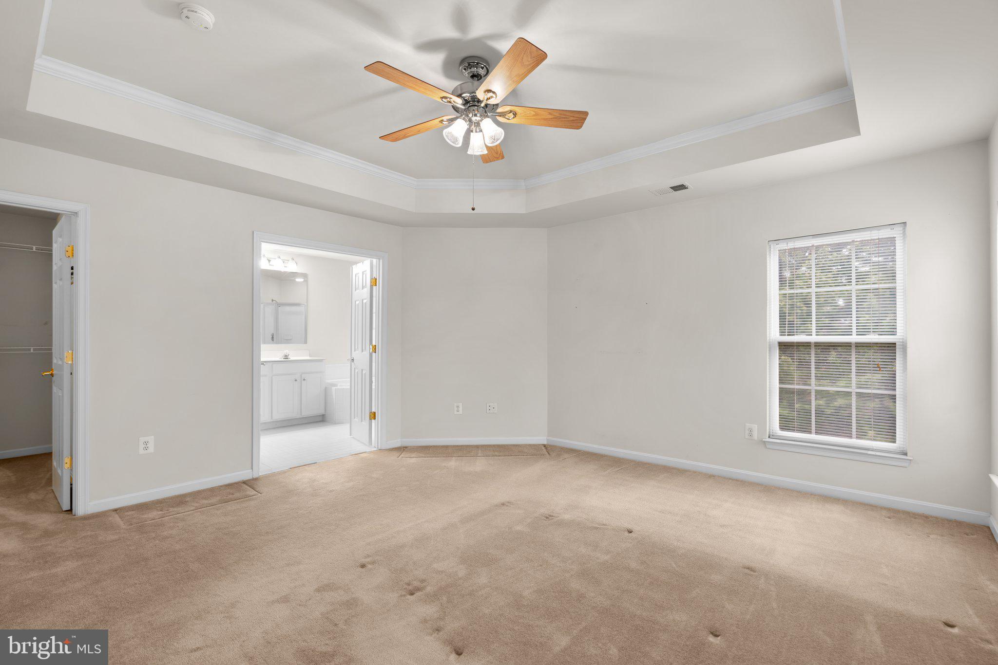 Upstairs, the spacious primary suite boasts a tray ceiling, a walk-in closet, and an en suite bathroom with dual vanities, a soaking tub, and a separate shower. Two additional bedrooms, a full hall bath, and a convenient laundry closet complete the upper level. The fully finished lower level offers a cozy gas fireplace, a walkout to the rear deck, a powder room, and access to the two-car garage.