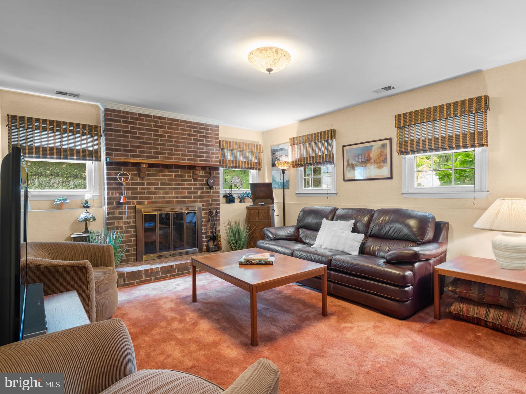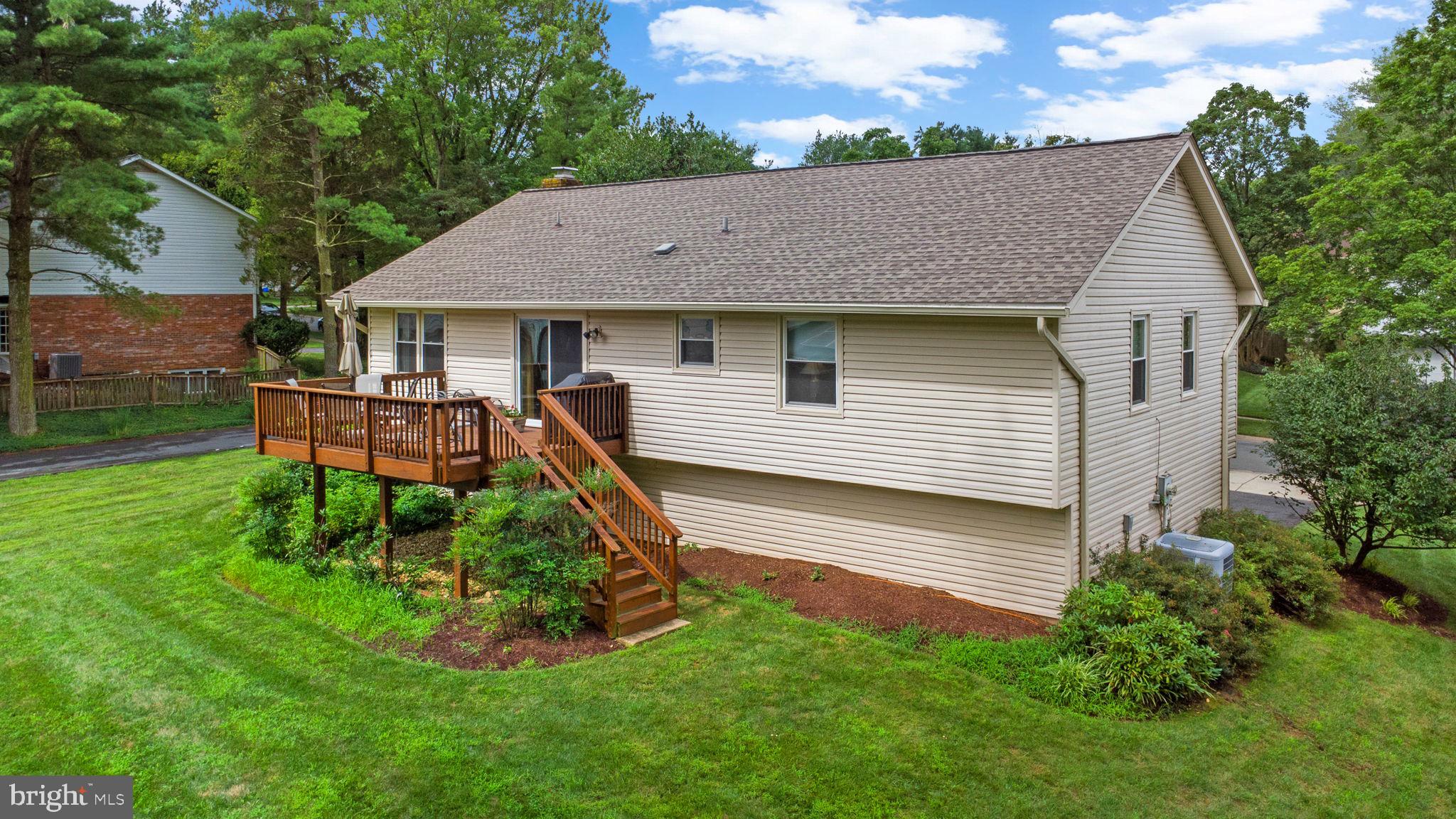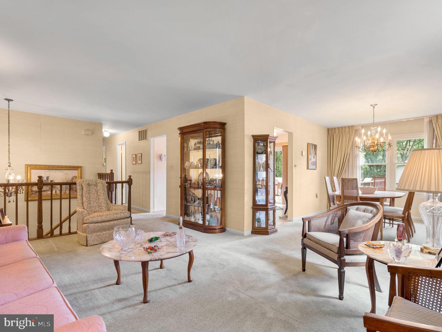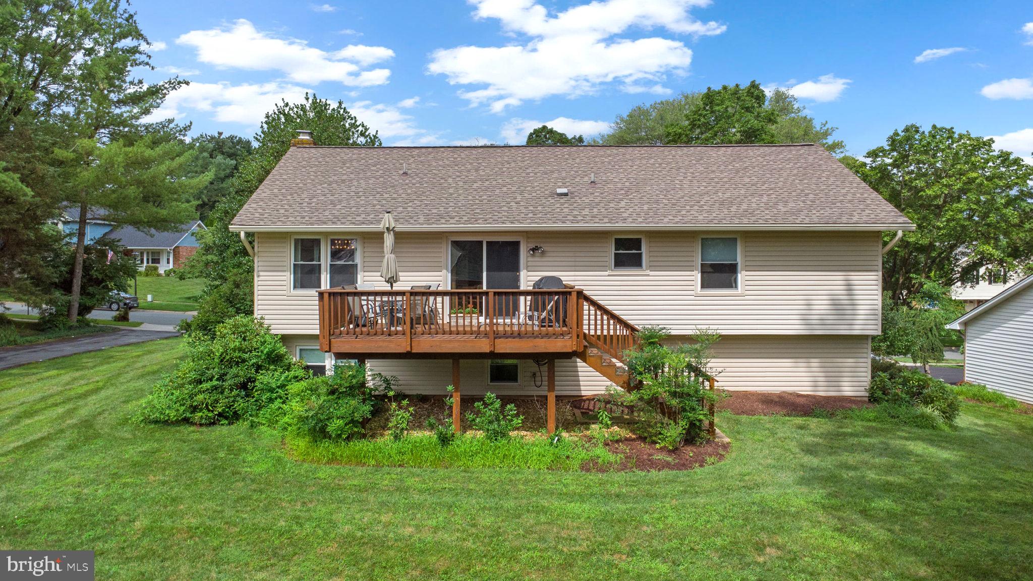 Welcome to 1709 Glastonberry Rd, a spacious multi-level home offering light-filled interiors, thoughtful updates, and a versatile floor plan. A welcoming foyer with slate flooring, coat closet, and decorative chandelier leads to an elegant living room with sun-filled replacement windows, decorative curtains, and wall-to-wall carpeting, alongside a formal dining room with a brass chandelier and matching window treatments. The remodeled table-space kitchen features a Spectra electric range, GE microwave, Bosch dishwasher, LG side-by-side refrigerator/freezer with ice dispenser, stainless dual sink, designer Formica countertops, pantry, luxury vinyl flooring, and sliding door access to a custom deck. Upstairs, the primary bedroom offers a double closet, custom window treatments, and an en suite bath with ceramic tile shower, while two additional bedrooms each feature generous closets, decorative curtains, and plush carpet. The hall full bath includes a ceramic tile tub/shower and decorative vanity. The expansive lower-level family room boasts a wood-burning fireplace with brick hearth and mantle, along with a laundry closet, powder room, fourth bedroom or office, multiple storage areas, and access to the two-car garage. Combining classic charm with modern conveniences, this home is perfect for both comfortable everyday living and stylish entertaining.