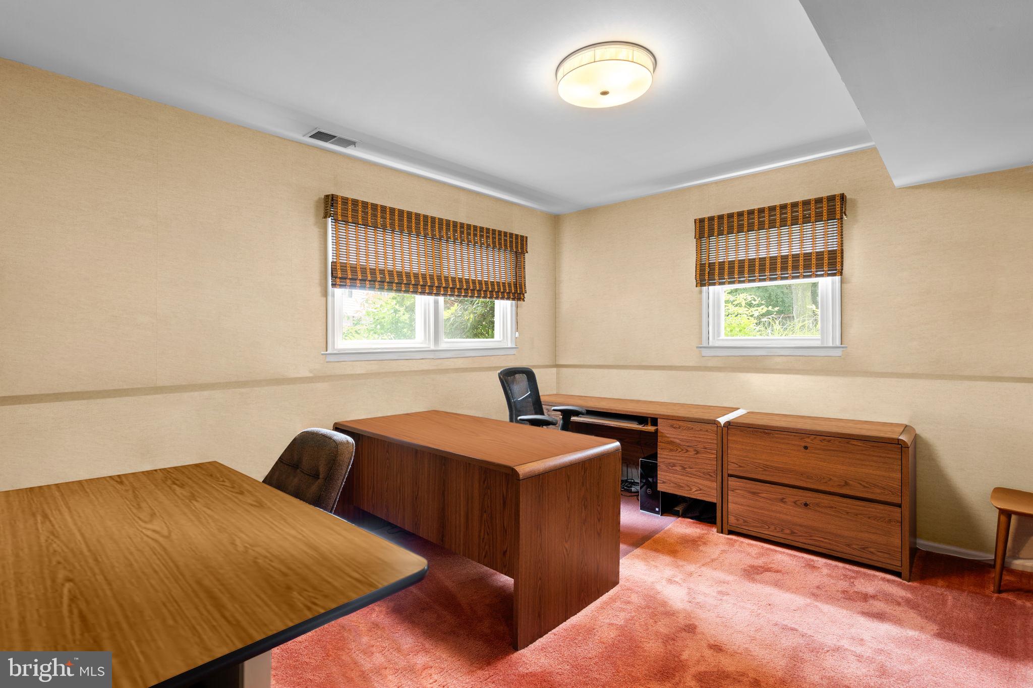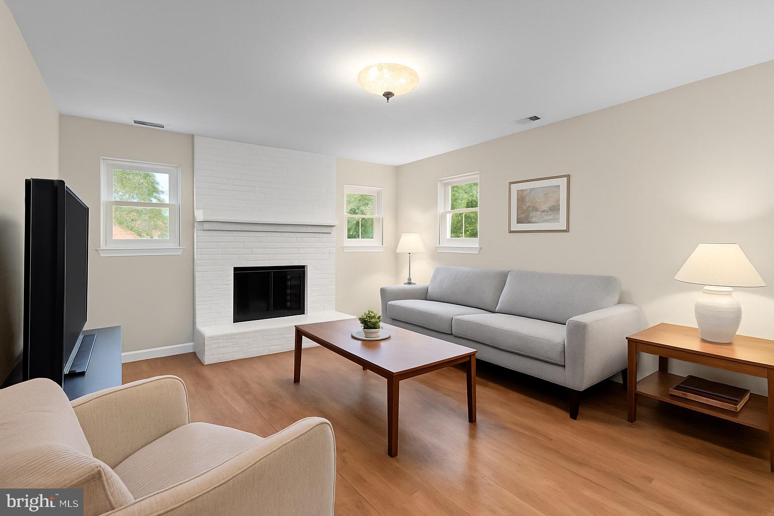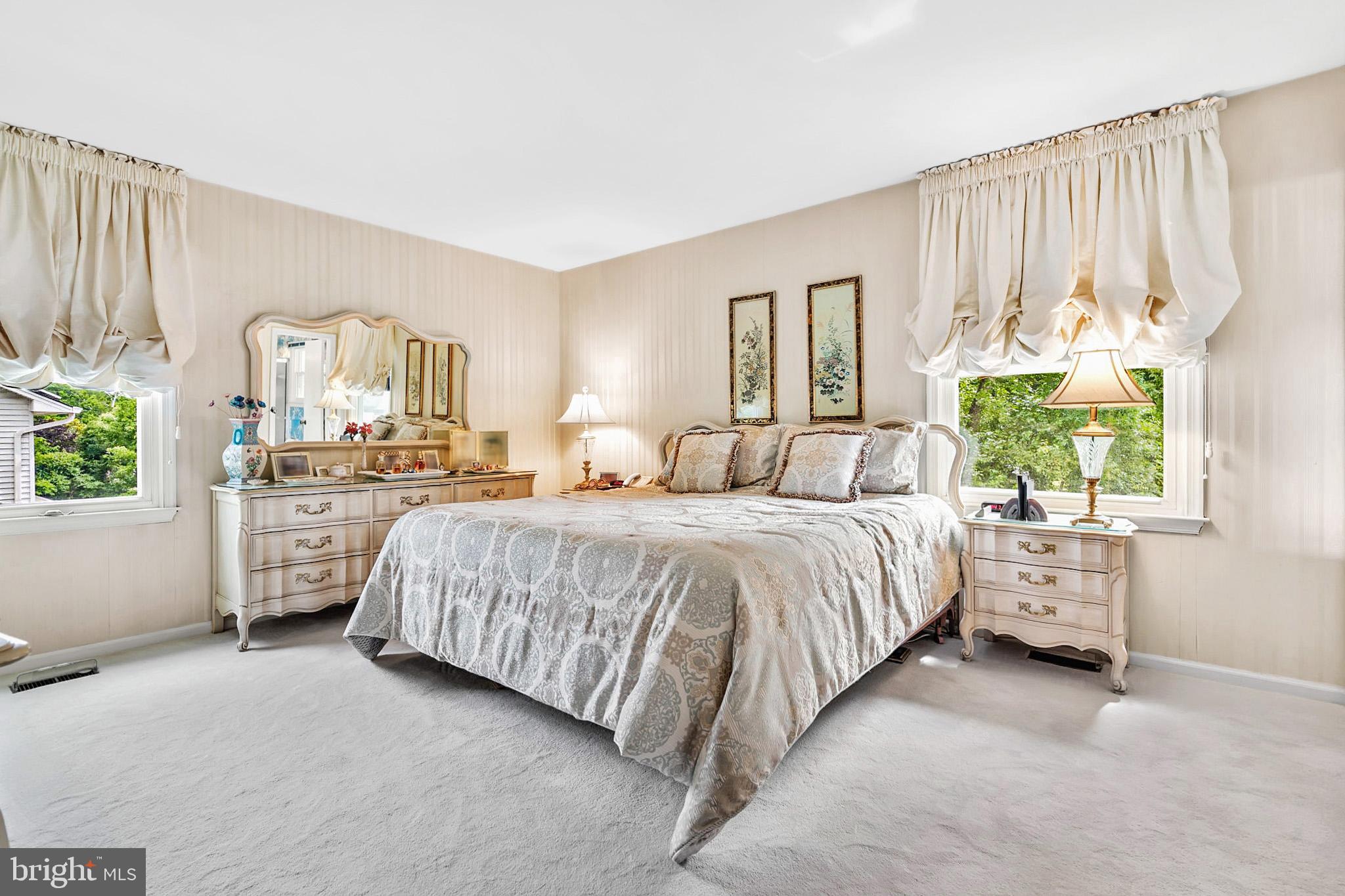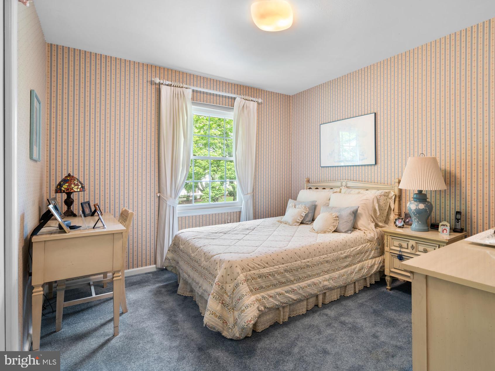 Welcome to 1709 Glastonberry Rd, a spacious multi-level home offering light-filled interiors, thoughtful updates, and a versatile floor plan. A welcoming foyer with slate flooring, coat closet, and decorative chandelier leads to an elegant living room with sun-filled replacement windows, decorative curtains, and wall-to-wall carpeting, alongside a formal dining room with a brass chandelier and matching window treatments. The remodeled table-space kitchen features a Spectra electric range, GE microwave, Bosch dishwasher, LG side-by-side refrigerator/freezer with ice dispenser, stainless dual sink, designer Formica countertops, pantry, luxury vinyl flooring, and sliding door access to a custom deck. Upstairs, the primary bedroom offers a double closet, custom window treatments, and an en suite bath with ceramic tile shower, while two additional bedrooms each feature generous closets, decorative curtains, and plush carpet. The hall full bath includes a ceramic tile tub/shower and decorative vanity. The expansive lower-level family room boasts a wood-burning fireplace with brick hearth and mantle, along with a laundry closet, powder room, fourth bedroom or office, multiple storage areas, and access to the two-car garage. Combining classic charm with modern conveniences, this home is perfect for both comfortable everyday living and stylish entertaining.