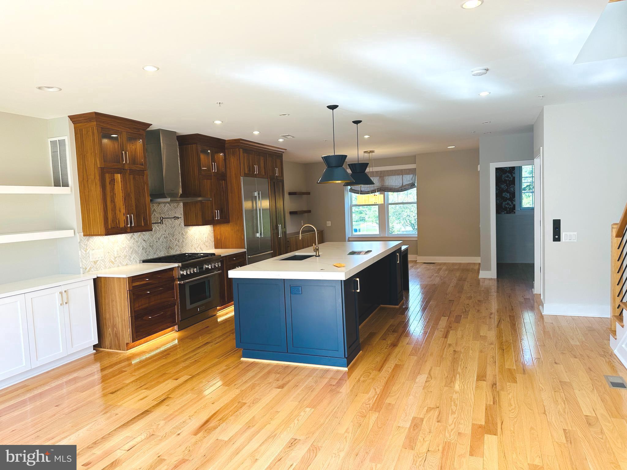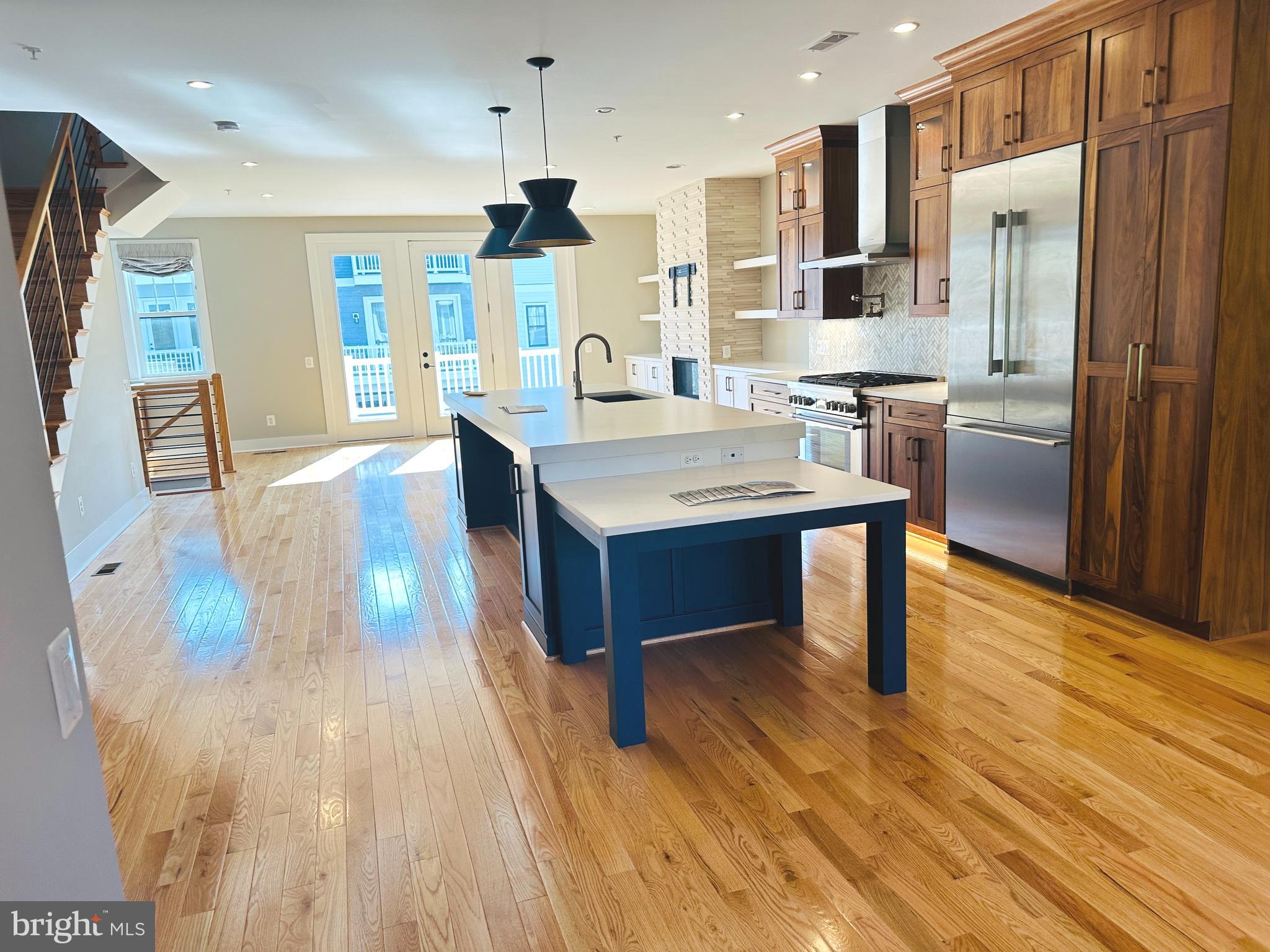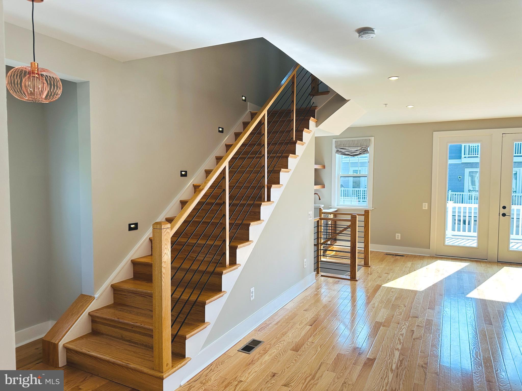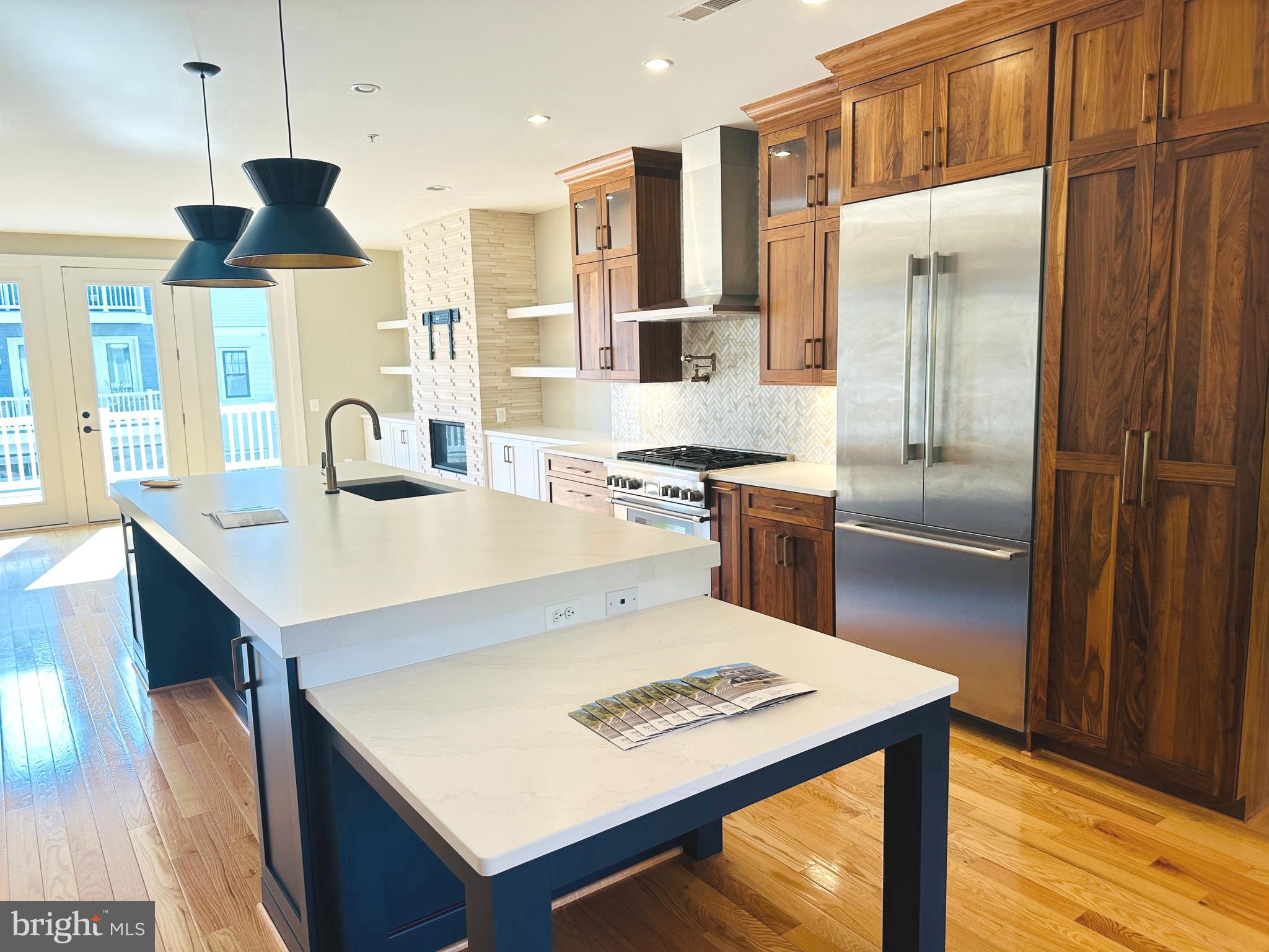MINUTES TO SHADY GROVE METRO!!!! PRIOR MODEL 4-bedroom, 3.5-bath ELEVATOR END UNIT townhome with 2 car garage, This stunning home offers over 2,500 square feet of meticulously designed living space. Designer ceramic tile flooring in foyer, a contemporary chandelier, a coat closet, and a state of the art elevator to travel to all levels. lower level bedroom with, a walk-in closet, and built ins with mini frig, The ensuite bath has frameless glass shower, subway tile surround, ceramic tile floor. Hardwood flooring throughout main and upper level, main level has a gourmet kitchen with beautiful cabinetry that feature soft-close cabinets and drawers, with ceramic tile backsplash, quartz counters with under cabinet lights a 13-foot quartz-topped island, and high-end stainless steel appliances, including a 6-burner gas range with a pot filler and stainless range hood. The dining area features a contemporary chandelier and floating built-in oak cabinetry, also with under cabinet lights. The family room includes a gorgeous stone electric fireplace with built-ins, a wet bar with a wine fridge, and access to a large composite deck through tall glass doors and elevator access. The primary bedroom also offers oak hardwood floors, a tray ceiling , and access to a private composite terrace. The ensuite bath features marble tile flooring, a dual sink vanity , a frameless glass shower, . Hall full bath includes ceramic tile flooring, and a soaking tub with a beautiful subway tile surround. The laundry closet is conveniently located on top bedroom level. Since this was a prior model home it has many upgrades. Located close to schools, parks with one directly across the street, 2 minutes to shopping/restaurants, and just 7 minutes from the Shady Grove Metro.