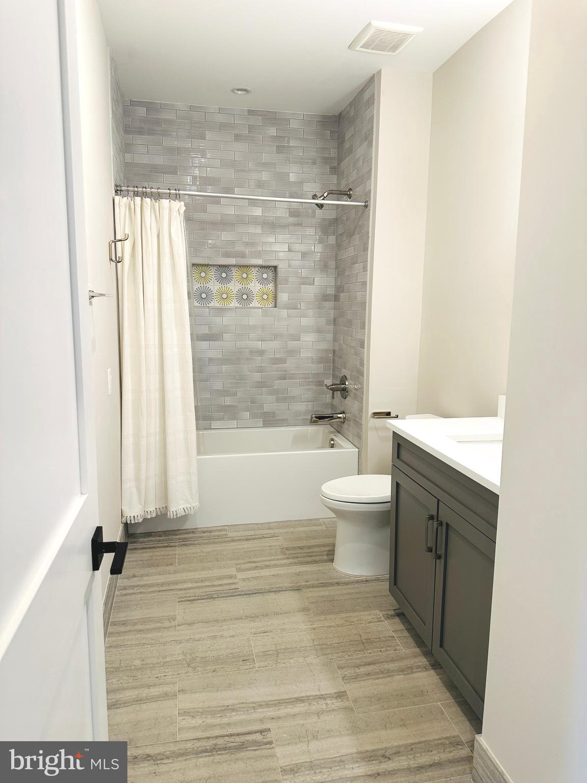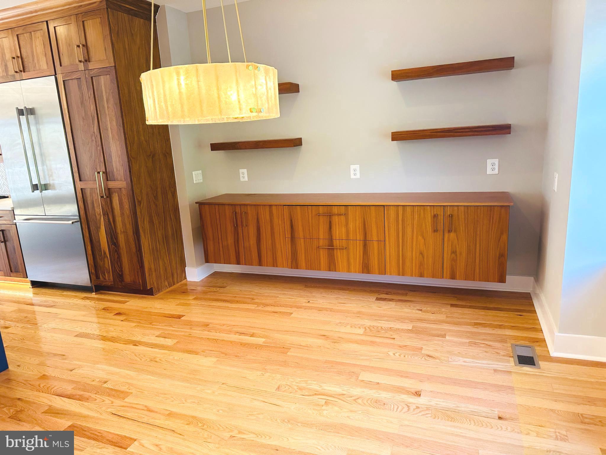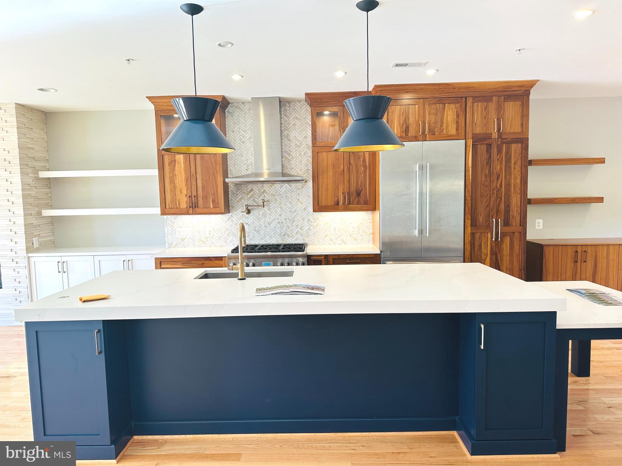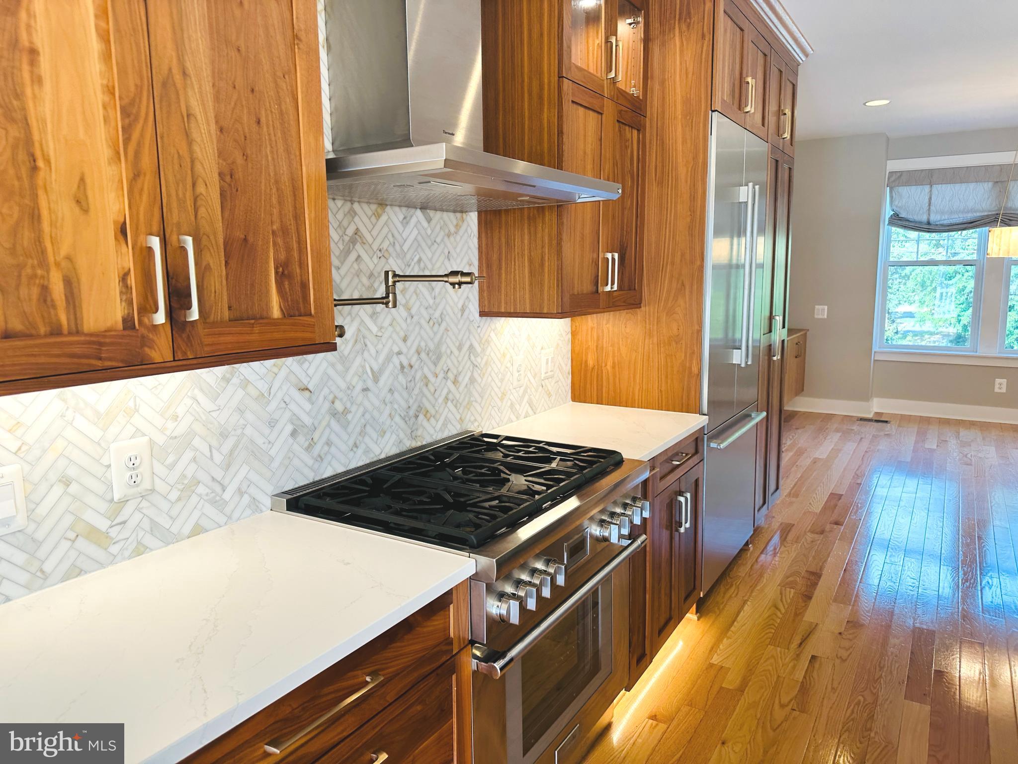 MINUTES TO SHADY GROVE METRO!!!! PRIOR MODEL 4-bedroom, 3.5-bath ELEVATOR END UNIT townhome with 2 car garage, This stunning home offers over 2,500 square feet of meticulously designed living space. Designer ceramic tile flooring in foyer, a contemporary chandelier, a coat closet, and a state of the art elevator to travel to all levels. lower level bedroom with, a walk-in closet, and built ins with mini frig, The ensuite bath has frameless glass shower, subway tile surround, ceramic tile floor. Hardwood flooring throughout main and upper level, main level has a gourmet kitchen with beautiful cabinetry that feature soft-close cabinets and drawers, with ceramic tile backsplash, quartz counters with under cabinet lights a 13-foot quartz-topped island, and high-end stainless steel appliances, including a 6-burner gas range with a pot filler and stainless range hood. The dining area features a contemporary chandelier and floating built-in oak cabinetry, also with under cabinet lights. The family room includes a gorgeous stone electric fireplace with built-ins, a wet bar with a wine fridge, and access to a large composite deck through tall glass doors and elevator access. The primary bedroom also offers oak hardwood floors, a tray ceiling , and access to a private composite terrace. The ensuite bath features marble tile flooring, a dual sink vanity , a frameless glass shower, . Hall full bath includes ceramic tile flooring, and a soaking tub with a beautiful subway tile surround. The laundry closet is conveniently located on top bedroom level. Since this was a prior model home it has many upgrades. Located close to schools, parks with one directly across the street, 2 minutes to shopping/restaurants, and just 7 minutes from the Shady Grove Metro.