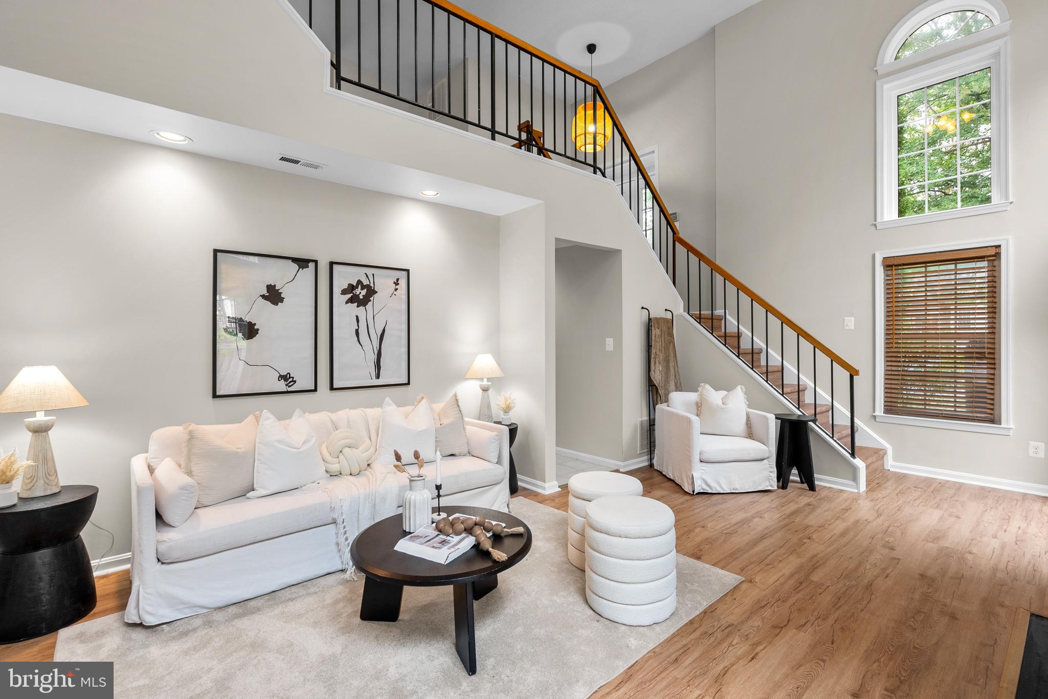 **OFFER DEADLINE TUESDAY 9/30 AT 8PM** - Tucked into a quiet corner of Montgomery Village, 20400 Ivybridge Ct lives like a modern treehouse with room to grow. This rare end-unit delivers lush views from every window, where soaring two-story ceilings, an open loft, and dramatic walls of windows flood the living room with natural light. Anchored by a cozy fireplace and framed by treetop views, this space is a true showstopper.