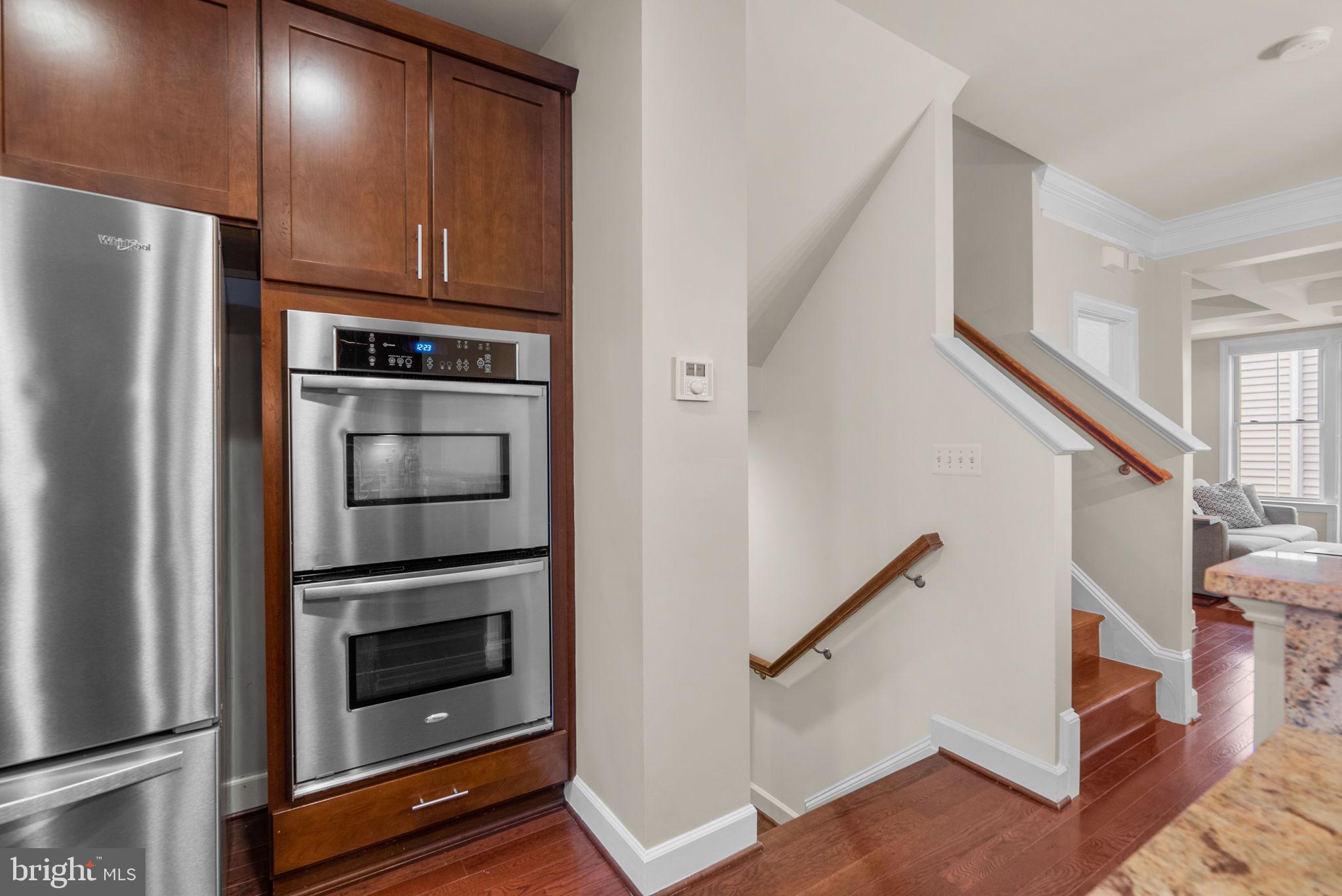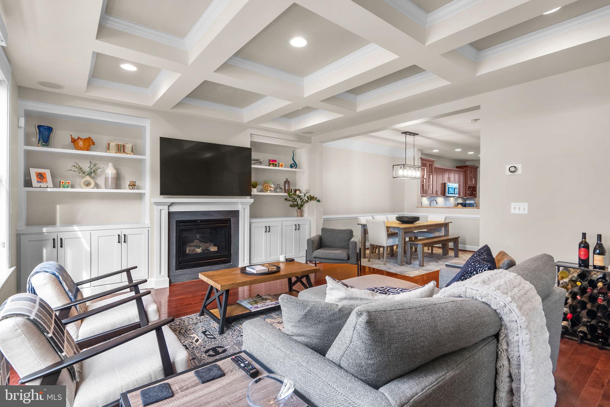 Stunning luxury 4-bedroom, 3.5-bath townhome located in the highly desirable Shirlington Crest community of South Arlington, just a short walk to the Village at Shirlington. This home offers an attached two-car garage, abundant storage, and every available builder upgrade. The open main level showcases a gourmet kitchen with granite countertops, double ovens, and a walk-in pantry, seamlessly flowing into the dining area and expansive living room featuring coffered ceilings, built-in cabinetry and shelving, surround sound, and a gas fireplace. The upper level includes three bedrooms and two full baths, highlighted by the spacious primary suite with a walk-in closet and a spa-inspired en-suite bath with dual vanities and a large shower. A private rooftop terrace provides an exceptional space for entertaining or relaxing outdoors. The entry level features a fourth bedroom and a full bath, ideal for guests or a home office. Additional highlights include an intercom system serving all levels, extensive built-out storage above the bedrooms, and a large storage closet off the stairwell. Enjoy an unbeatable location with quick access to I-395 and I-66, and walkable proximity to Shirlington's restaurants, shops, dog park, the W&OD Trail, and Army Navy Country Club.