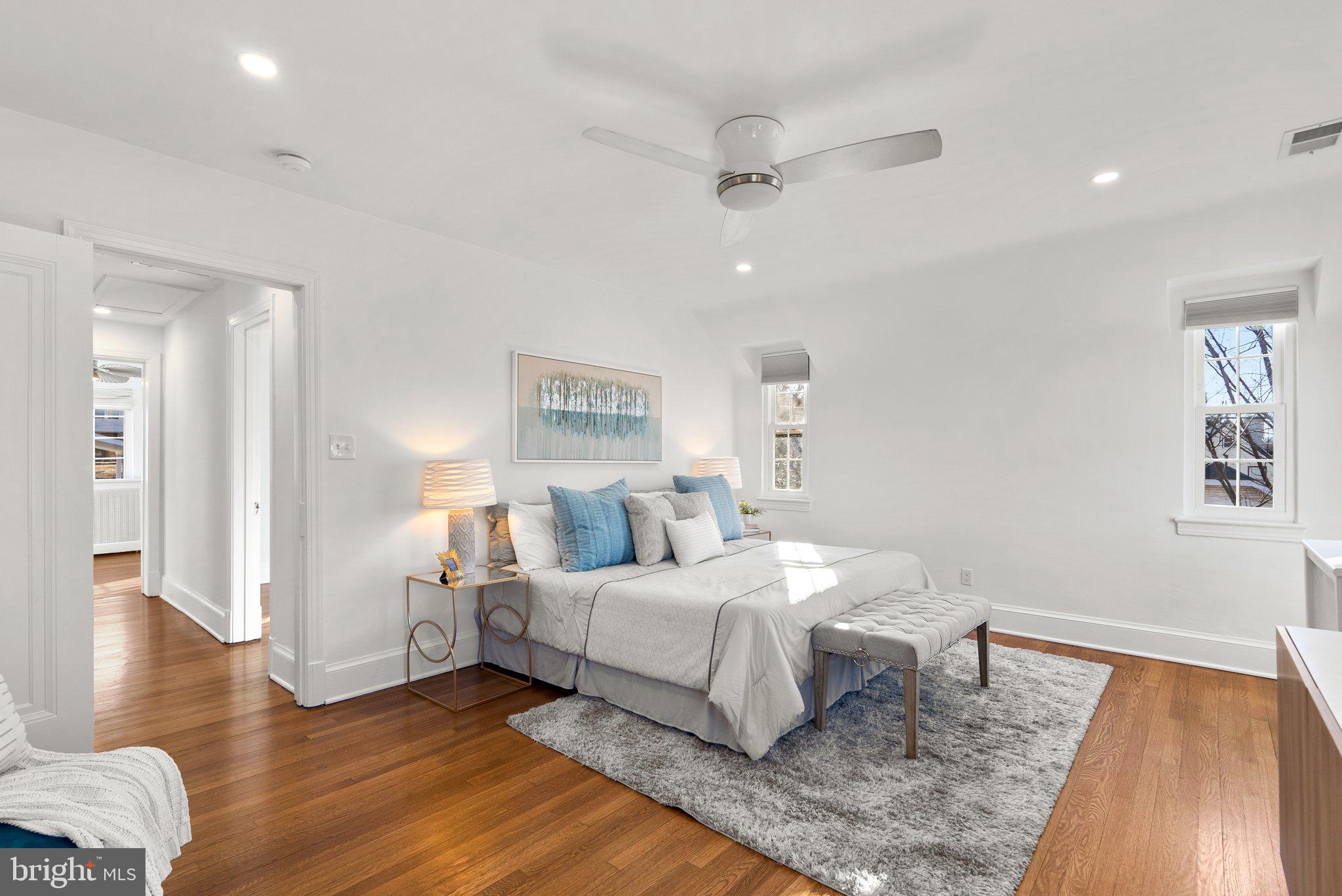 Fall in love with this sun-drenched home, designed for both elegant entertaining and comfortable living. Gorgeous hardwood floors span the first and second levels, enhancing the warm and inviting atmosphere. Enjoy cozy evenings by the two wood-burning fireplaces--one on the main level and another in the spacious lower-level recreation room.