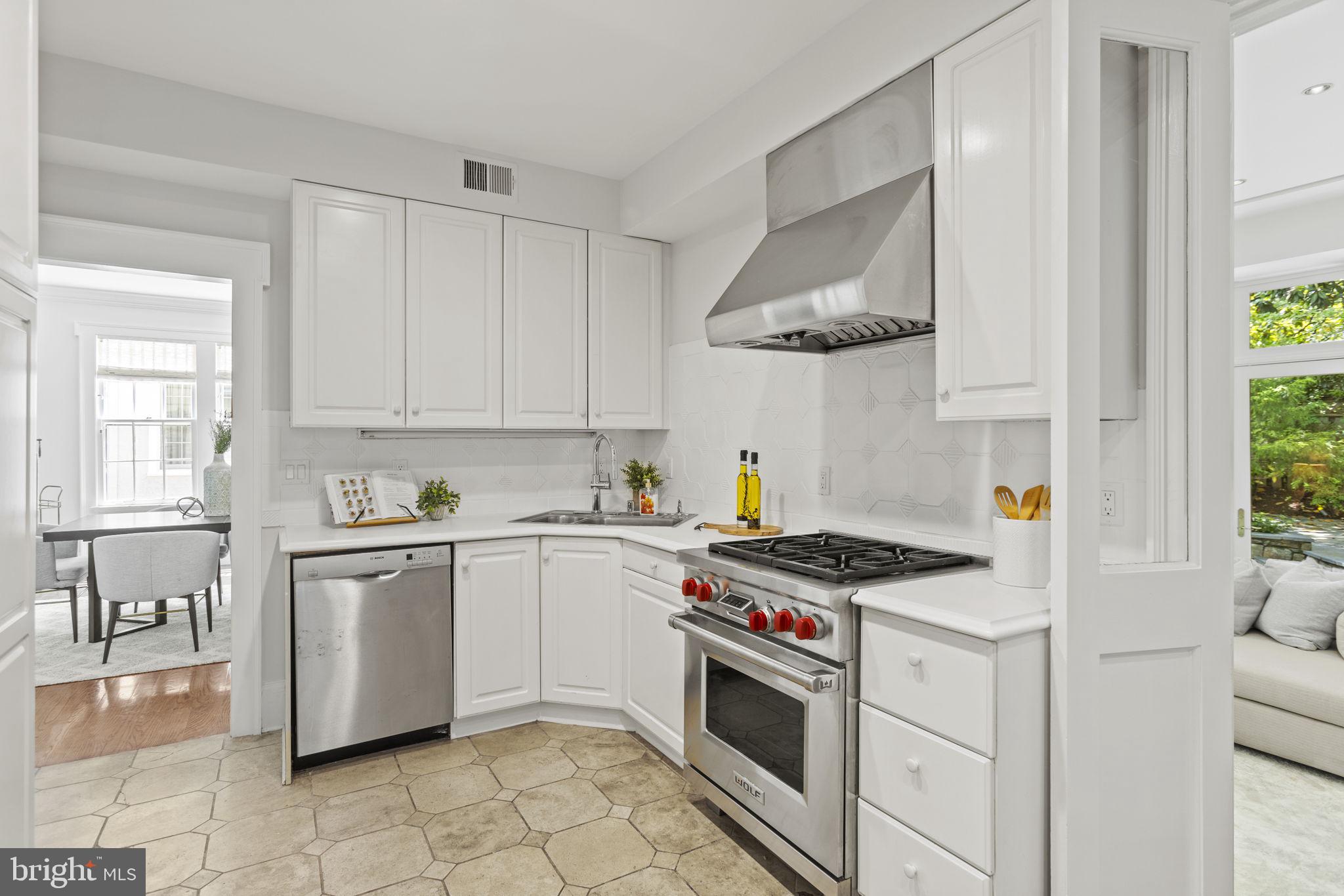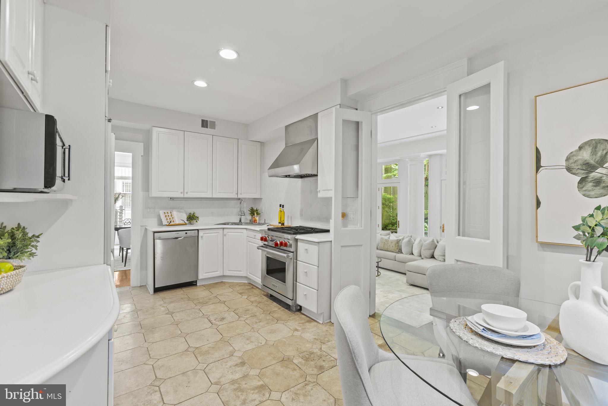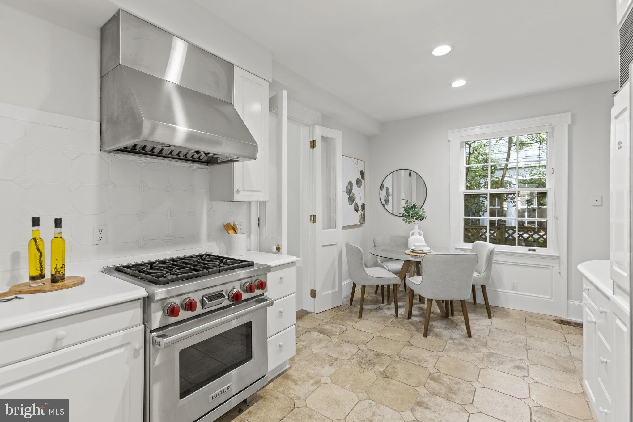 The chefs kitchen offers commercial appliances, an eat in dining space, and beautiful natural light flooding the breakfast nook.
