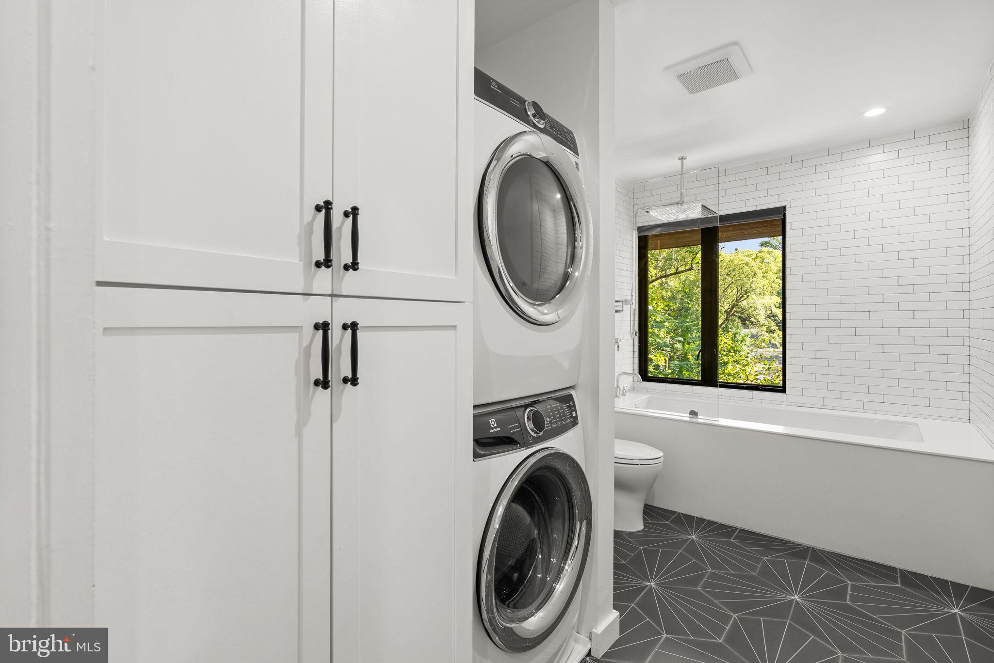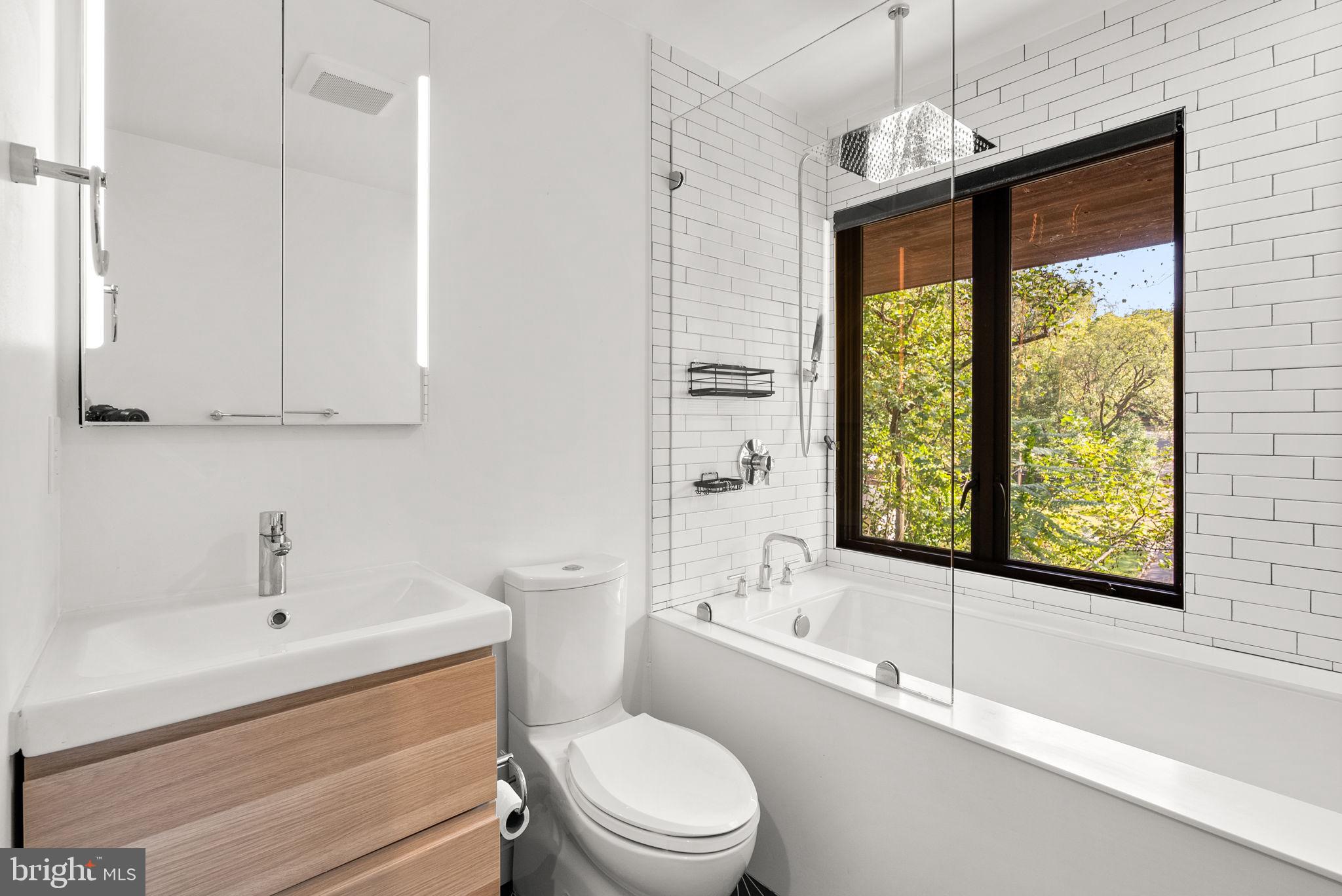 Step outside, and the world quiets. A landscaped backyard unfurls into a private sanctuary--a hammock strung like punctuation between two trees, a fire pit that draws stories from friends, laughter from flames. Beyond the patio, a hidden gate opens like a secret into Rock Creek Park, where nature keeps its own kind of time.