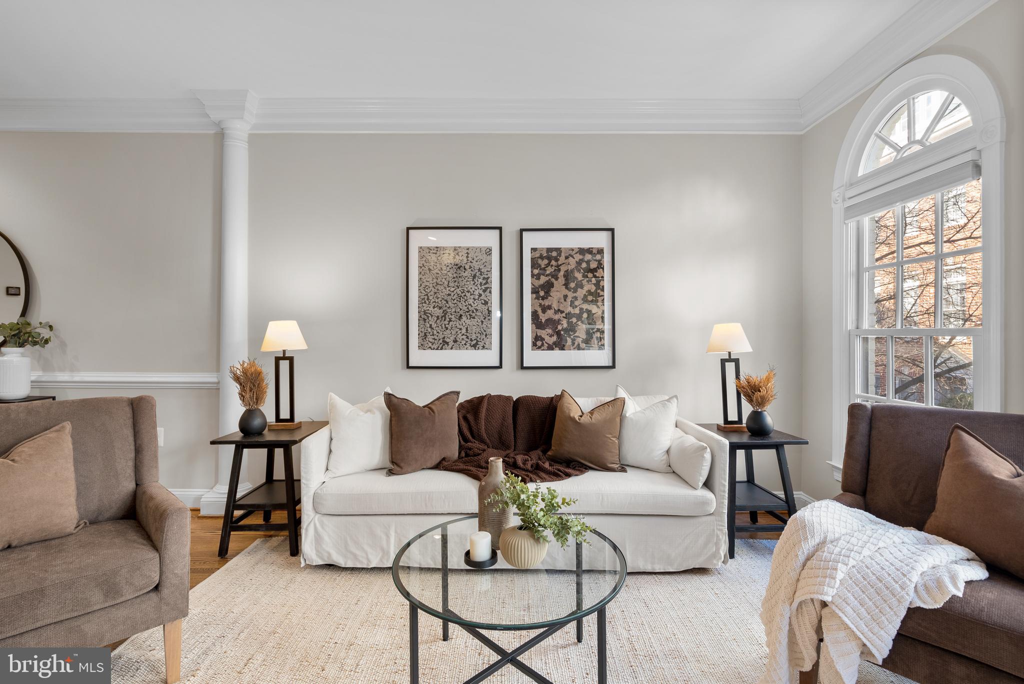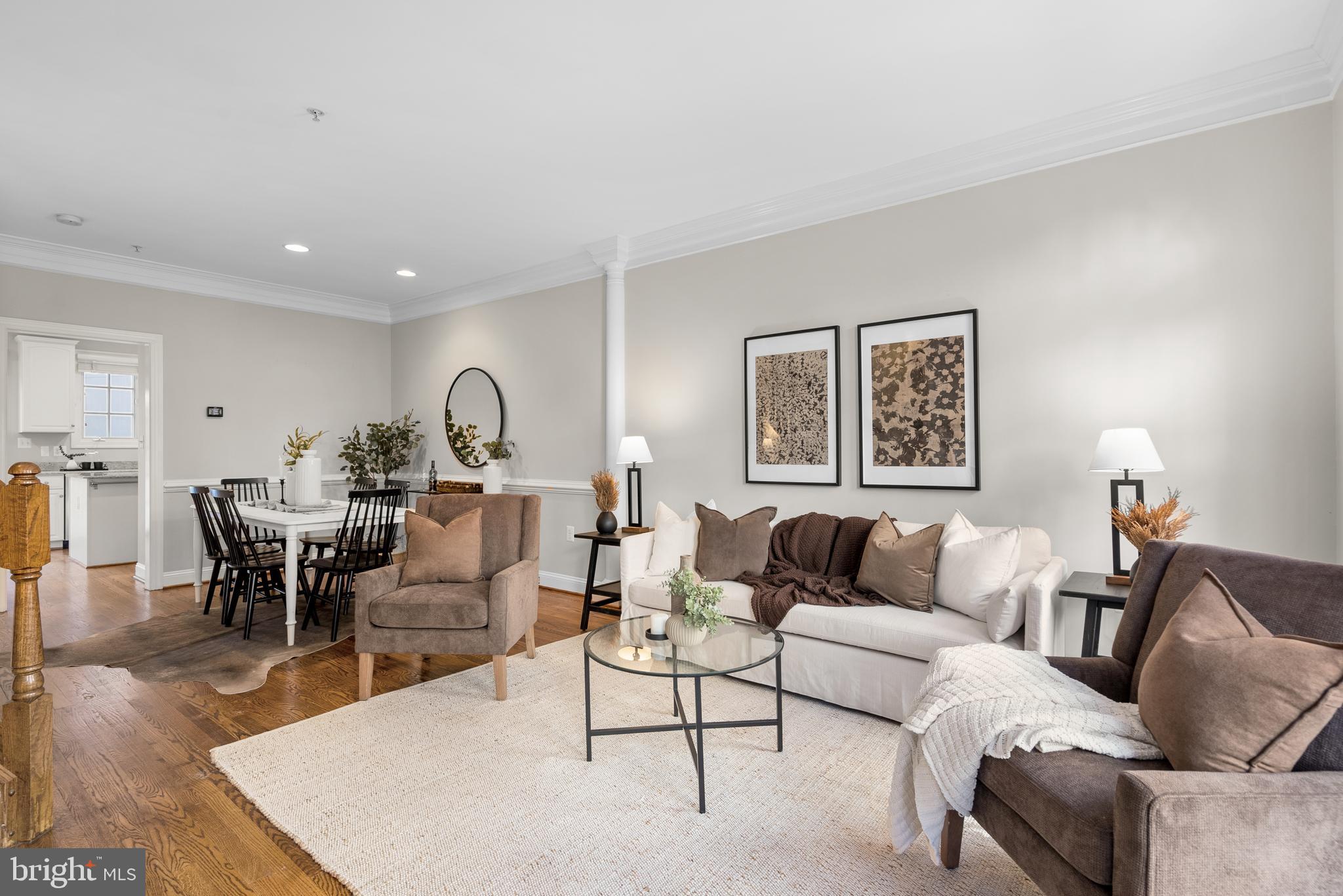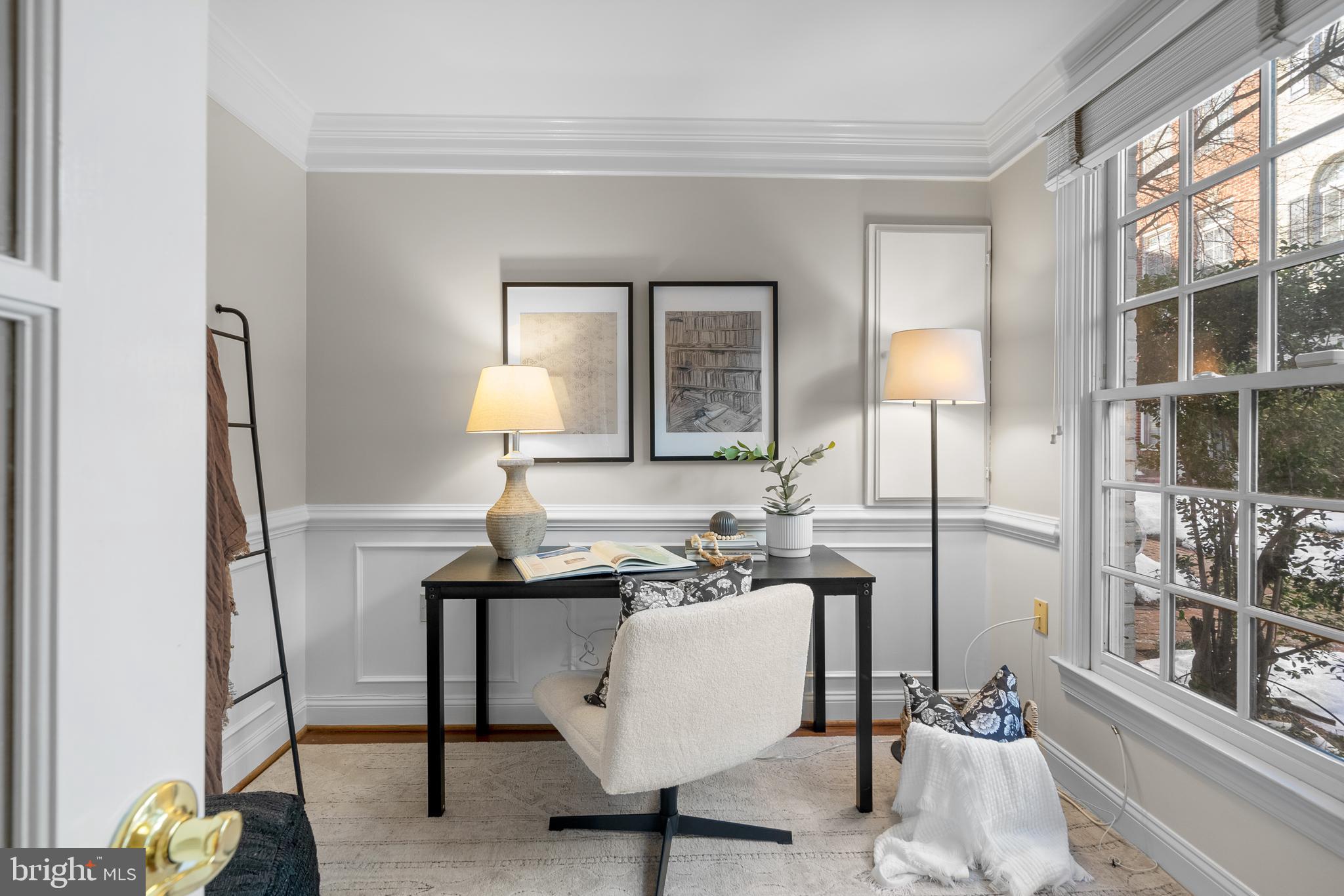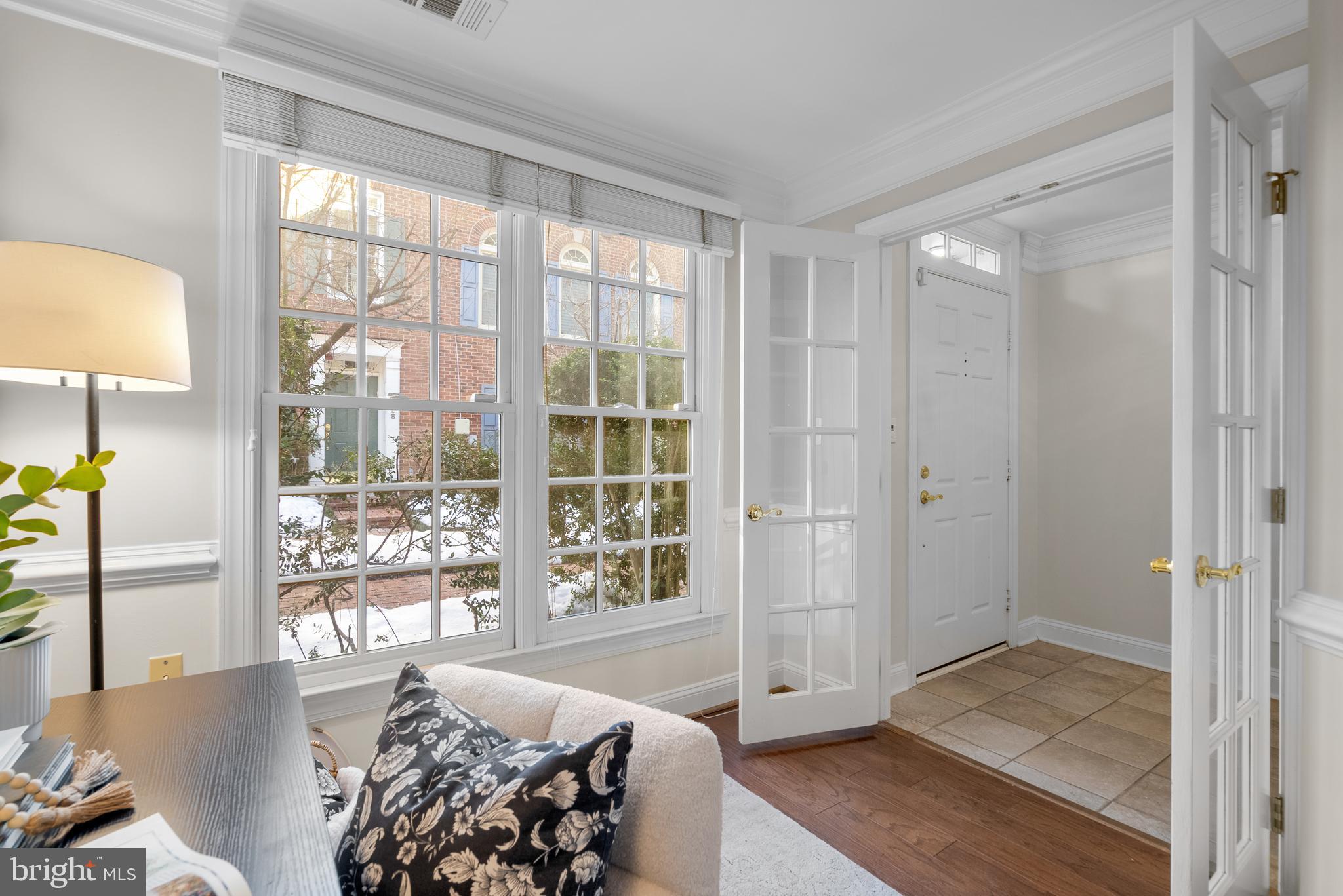 The tranquil manicured courtyards of the Courts of Chevy Chase welcome you home. Step inside to find home office with french doors and plenty of natural light--perfect for working remotely or pursuing your creative passions.