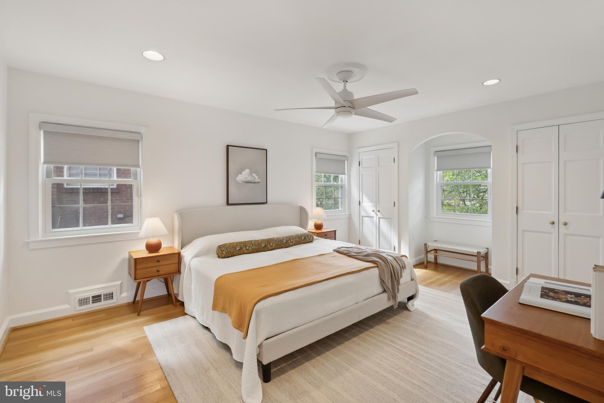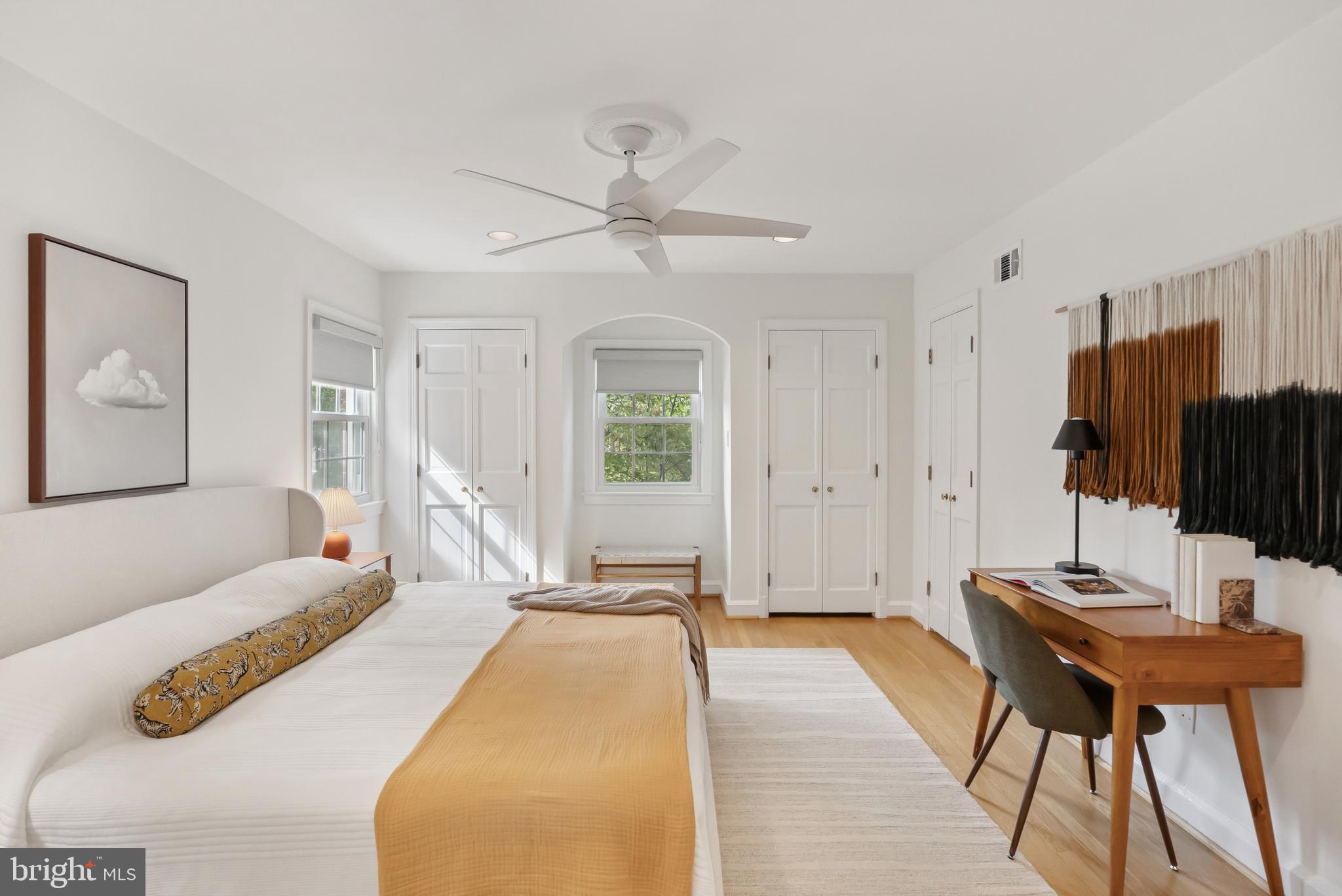 Grounded by warm hardwood floors, the second floor features three bedrooms and two beautifully renovated bathrooms, including a sunlit primary suite with multiple closets. The third floor provides a flexible space perfect for a fourth bedroom, home office, or creative retreat, and also offers additional storage space.