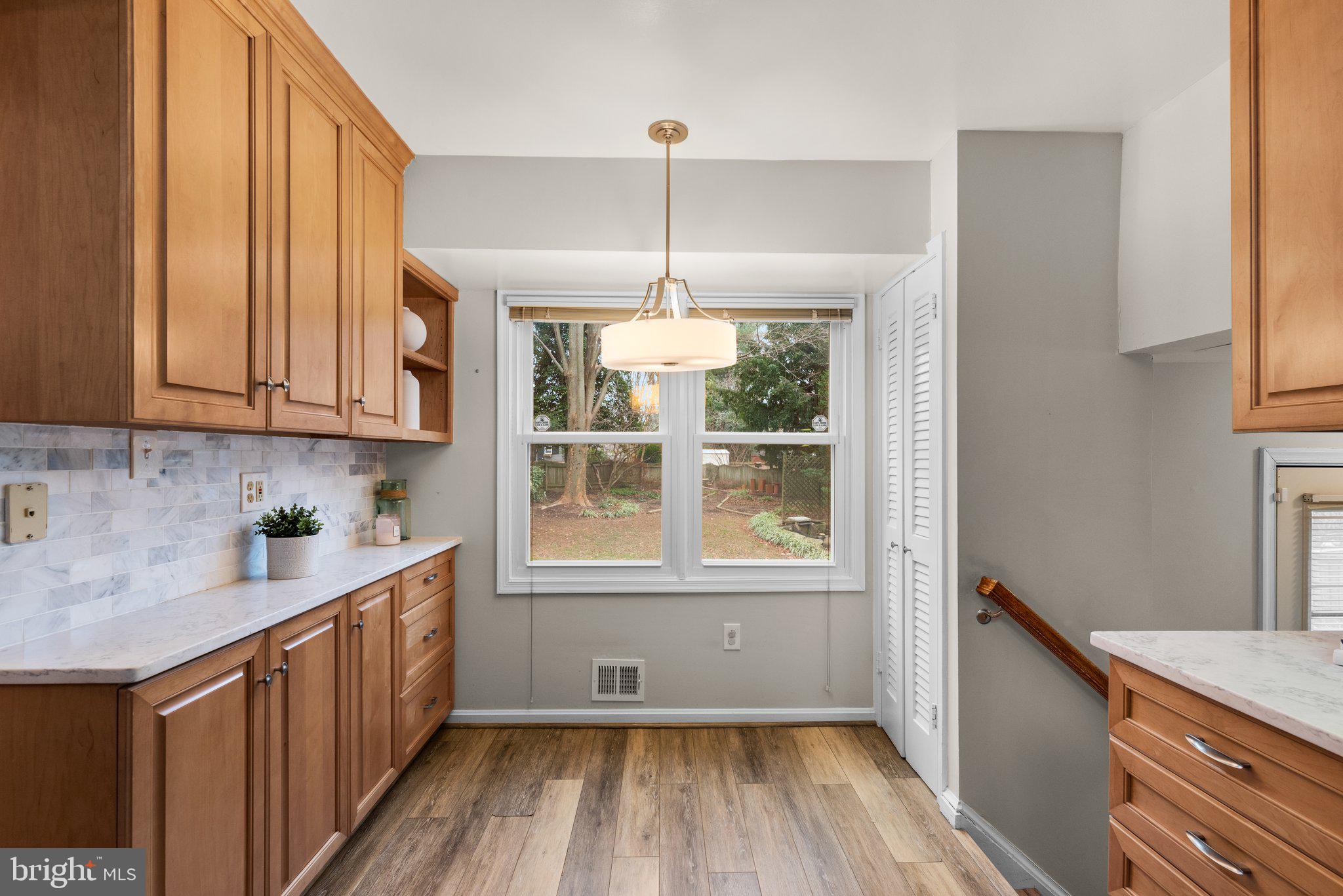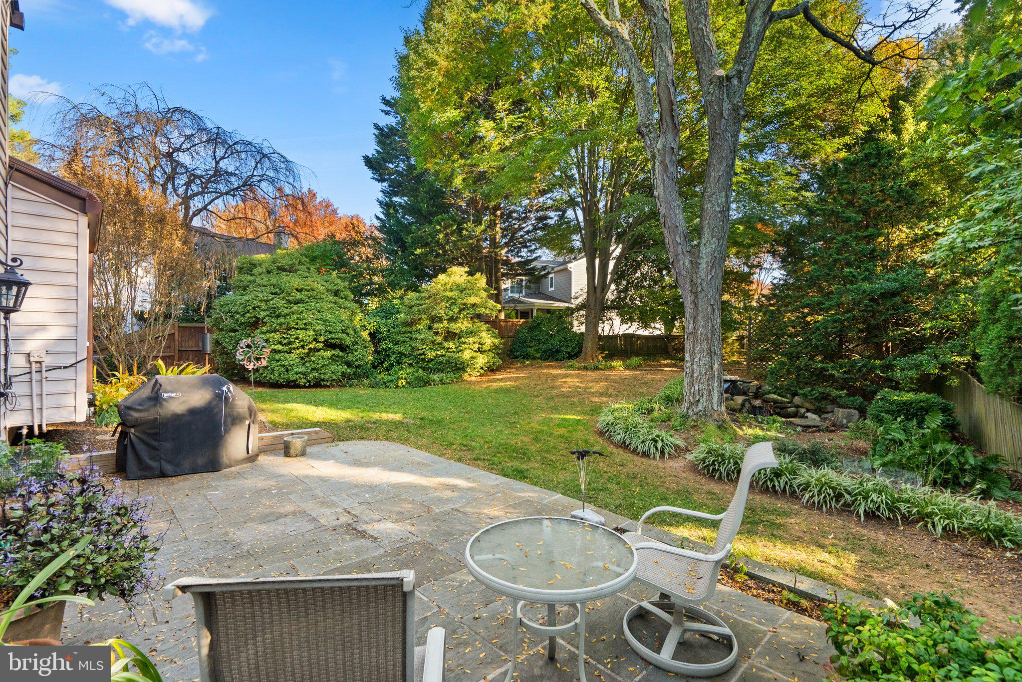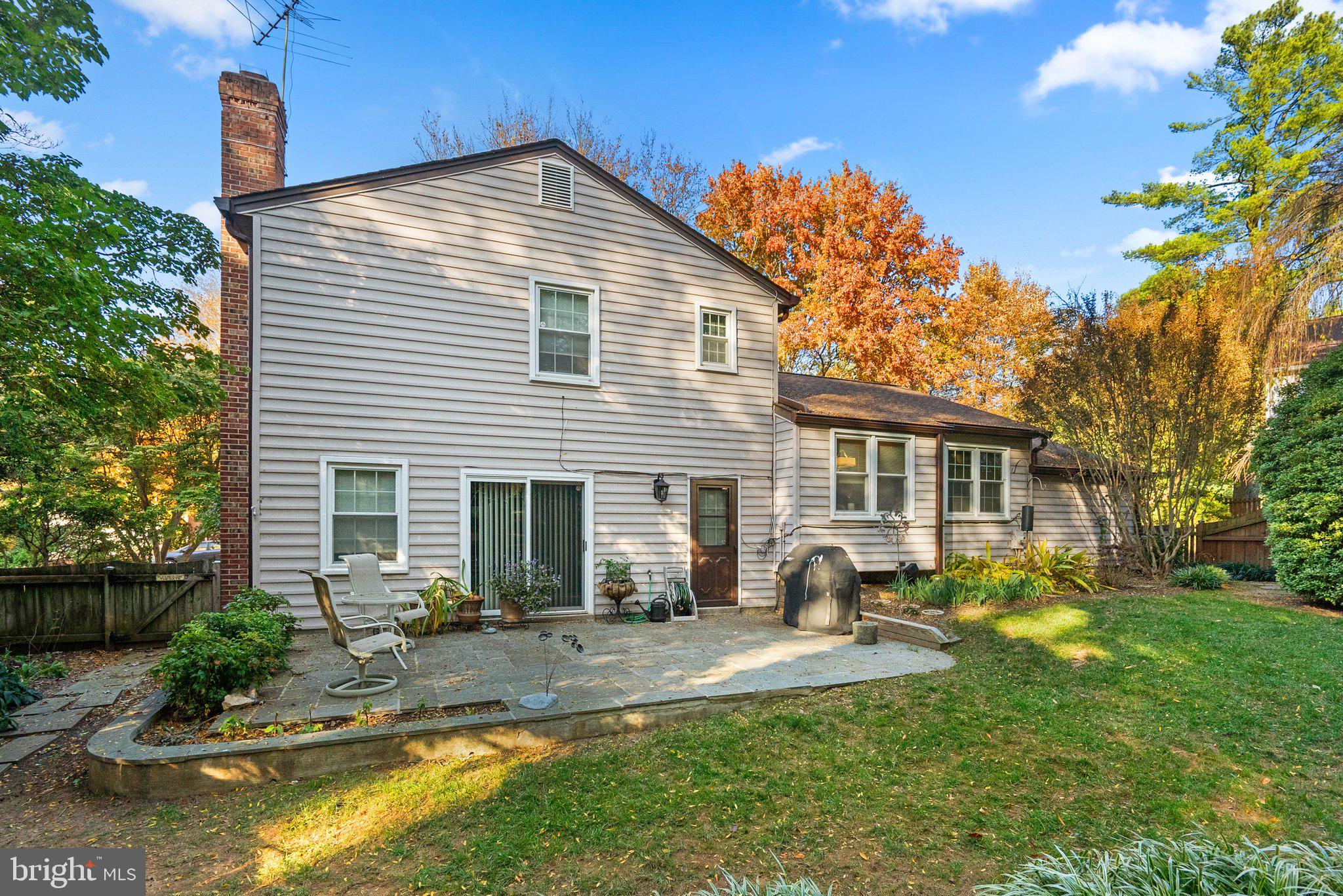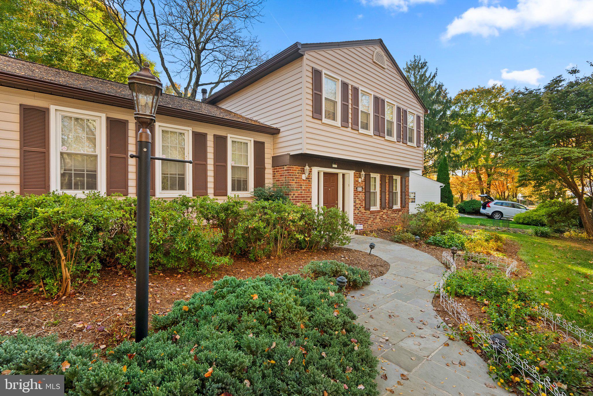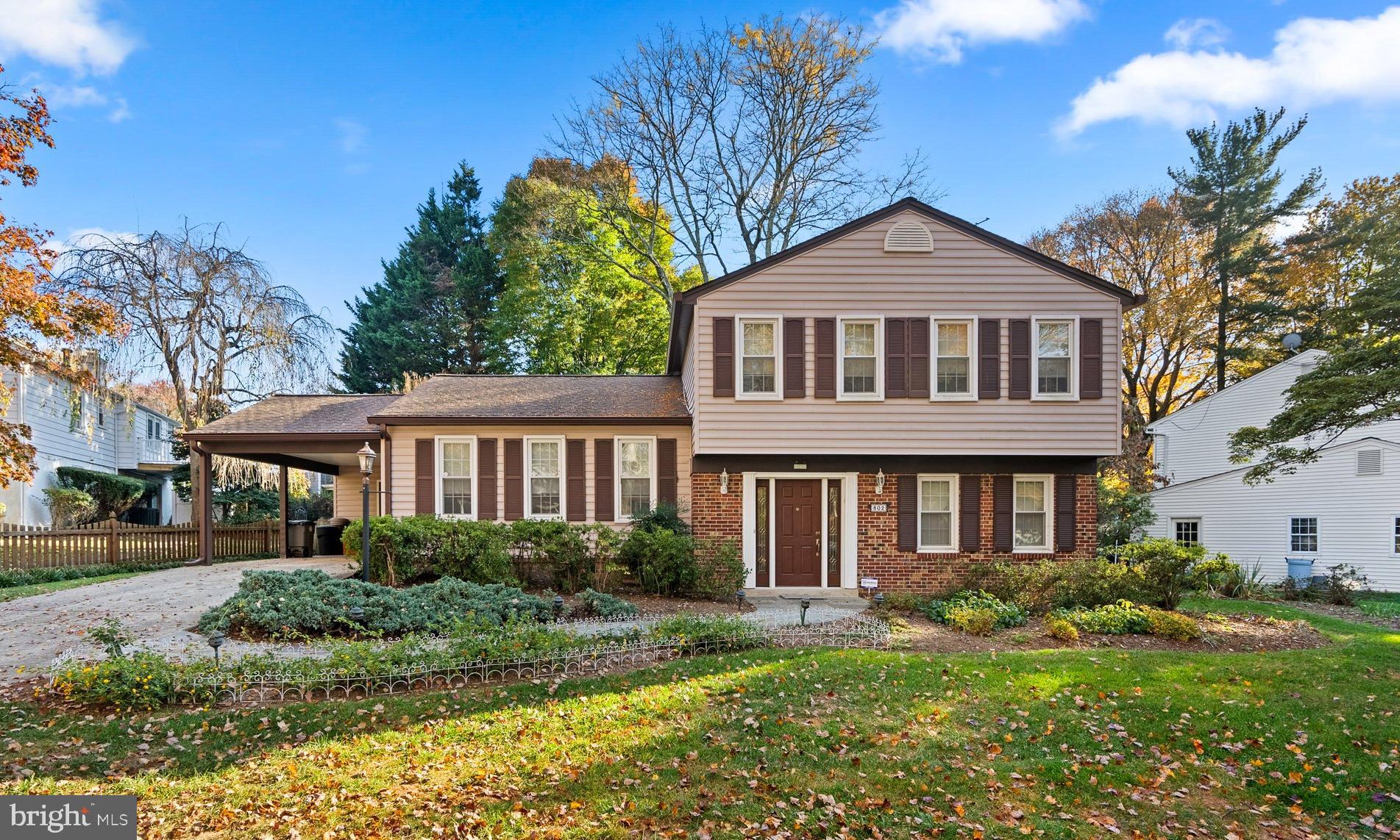 This special home is situated on a magnificent private lot framed by mature trees, specimen plantings, a pond, and flagstone patio. The main level features a gracious foyer with a designer chandelier and ceramic tile floor, a powder room with granite vanity, and a versatile bedroom or den with custom blinds and wall-to-wall carpet. The sun-filled family room boasts a wood-burning fireplace with brick surround and new wall-to-wall carpet, and access to a slate patio. The remodeled kitchen shines with 42-inch maple cabinetry, stainless steel KitchenAid appliances, undercabinet lighting, luxury vinyl flooring, and a pantry. Entertain in style in the elegant dining room with crown molding, chair rail, and a decorative chandelier, or relax in the living room with hardwood floors and custom blinds.Upstairs, the primary suite includes two double closets with custom organizers, a linen closet, and an en suite bath with a tiled shower, glass enclosure, Corian vanity, and ceramic tile floor. Two additional bedrooms offer custom shades, ample closet space, and hardwood floors. The hall bathroom features a tub/shower combo with decorative glass enclosure, Corian vanity, and ceramic tile flooring. The unfinished basement provides ample storage space, a 50-gallon hot water heater (2006), and the furnace (2017). Outside, enjoy the privacy of the slate patio, perfect for entertaining or relaxing.