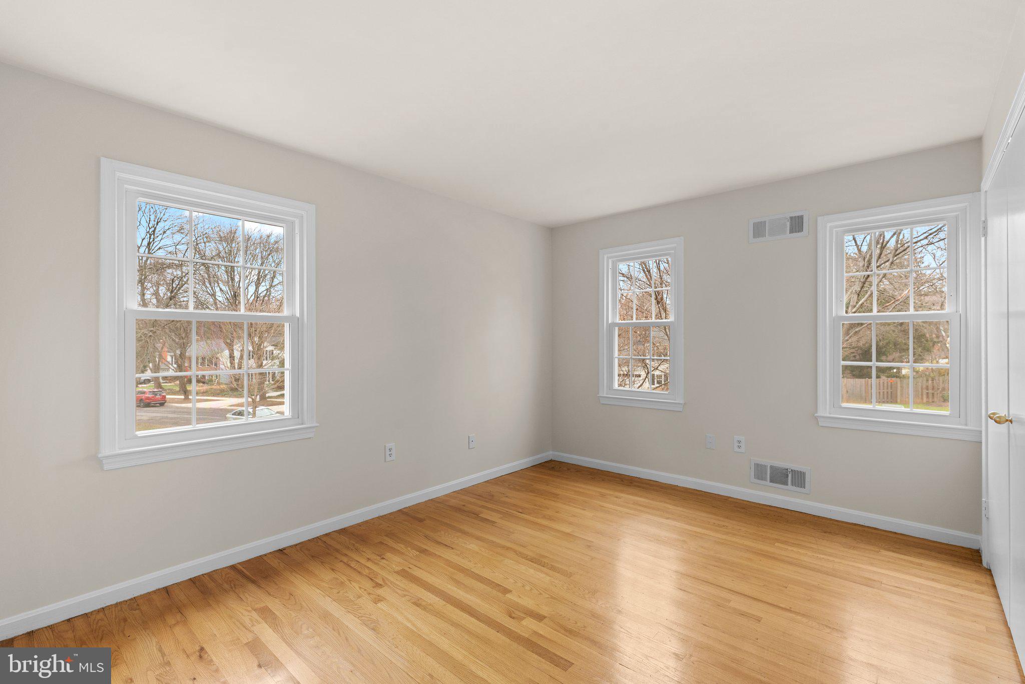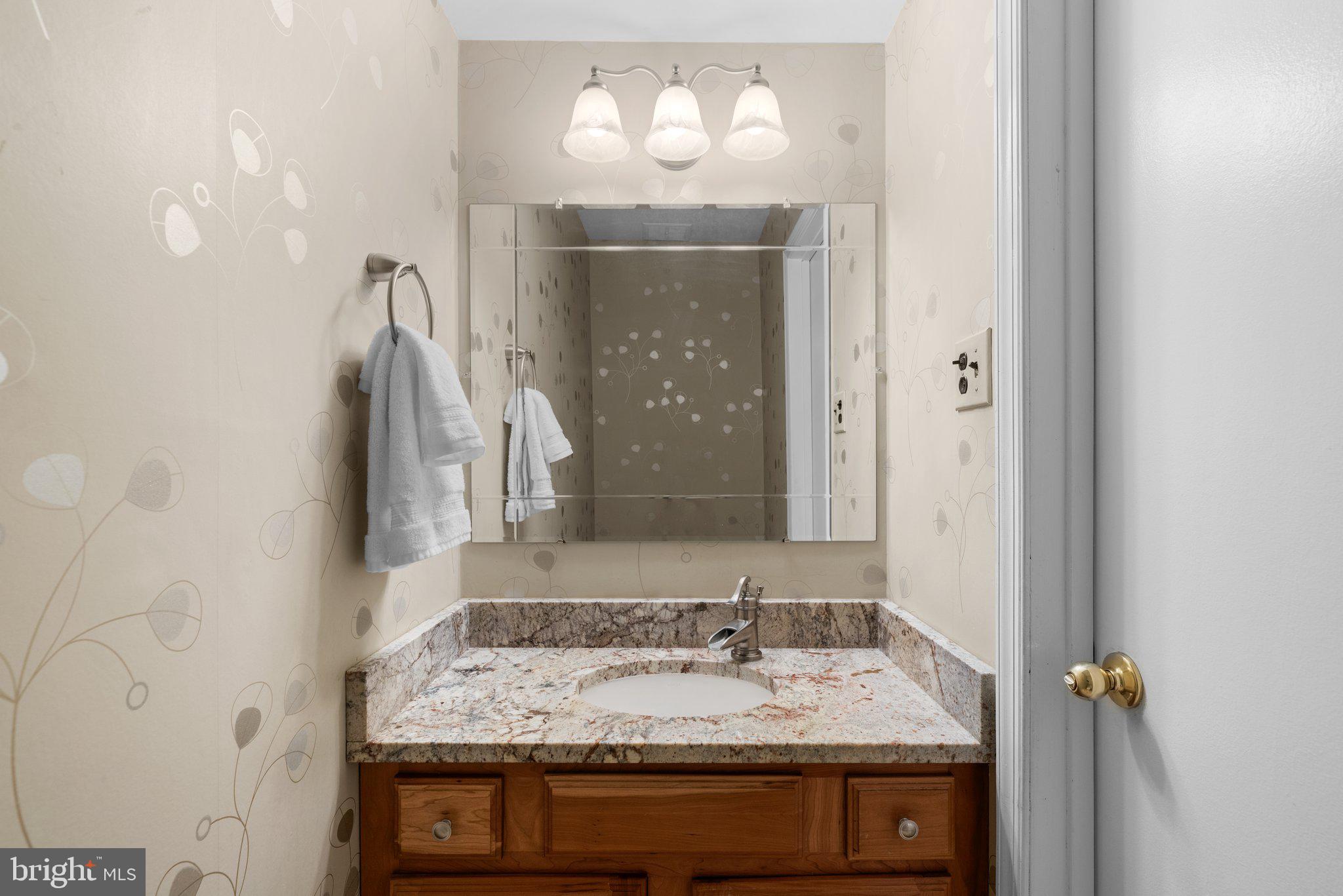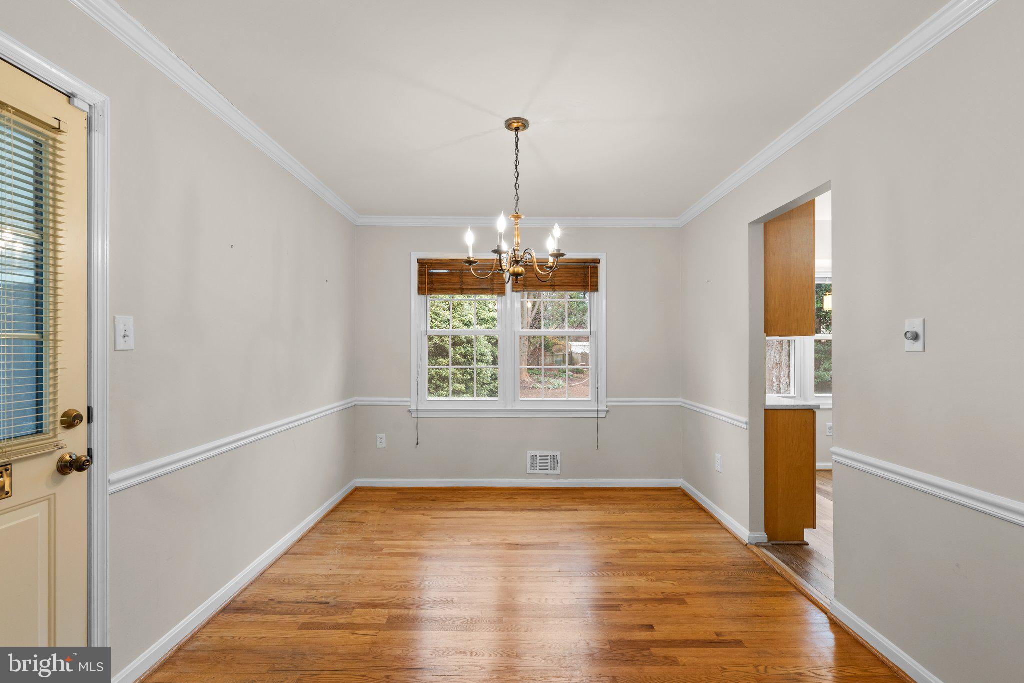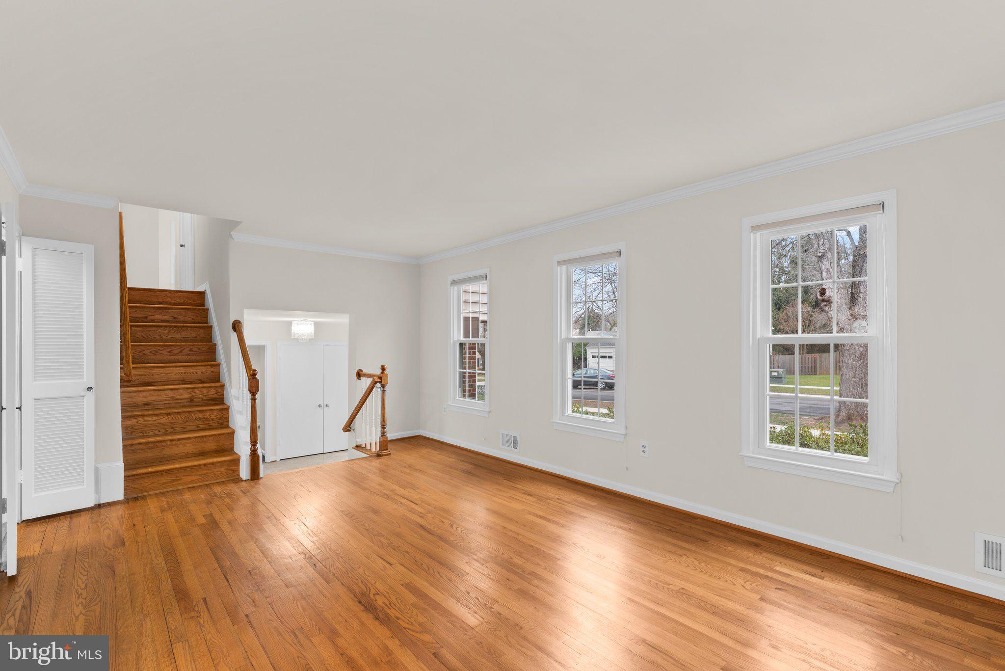 This special home is situated on a magnificent private lot framed by mature trees, specimen plantings, a pond, and flagstone patio. The main level features a gracious foyer with a designer chandelier and ceramic tile floor, a powder room with granite vanity, and a versatile bedroom or den with custom blinds and wall-to-wall carpet. The sun-filled family room boasts a wood-burning fireplace with brick surround and new wall-to-wall carpet, and access to a slate patio. The remodeled kitchen shines with 42-inch maple cabinetry, stainless steel KitchenAid appliances, undercabinet lighting, luxury vinyl flooring, and a pantry. Entertain in style in the elegant dining room with crown molding, chair rail, and a decorative chandelier, or relax in the living room with hardwood floors and custom blinds.Upstairs, the primary suite includes two double closets with custom organizers, a linen closet, and an en suite bath with a tiled shower, glass enclosure, Corian vanity, and ceramic tile floor. Two additional bedrooms offer custom shades, ample closet space, and hardwood floors. The hall bathroom features a tub/shower combo with decorative glass enclosure, Corian vanity, and ceramic tile flooring. The unfinished basement provides ample storage space, a 50-gallon hot water heater (2006), and the furnace (2017). Outside, enjoy the privacy of the slate patio, perfect for entertaining or relaxing.