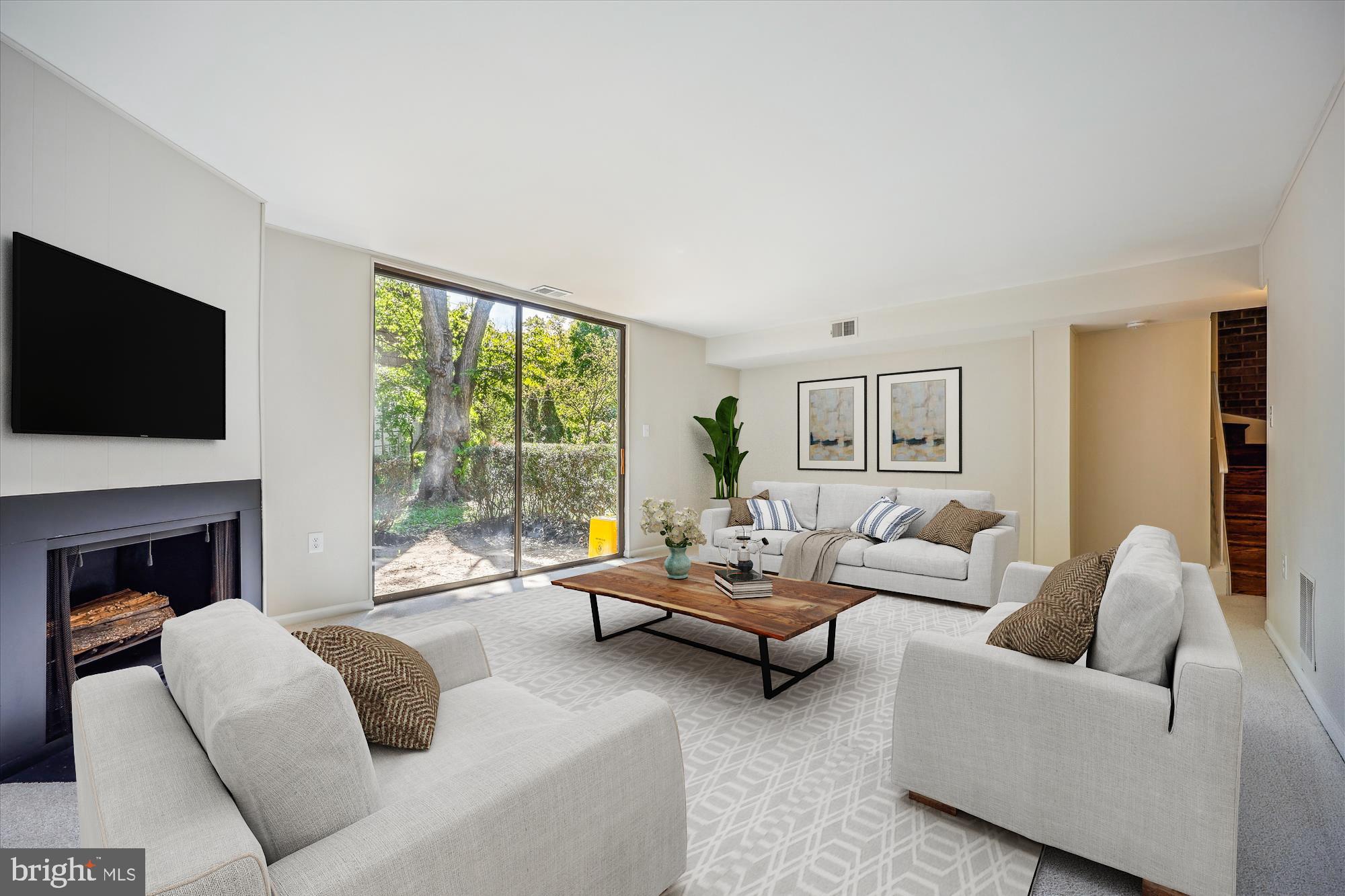 Thoughtfully designed with open living space and numerous sliding glass doors accessing multiple balconies and patios, this freshly painted home features hardwood floors, new carpet, generously sized windows, multiple outdoor spaces, a cozy fireplace, and an assigned parking space.