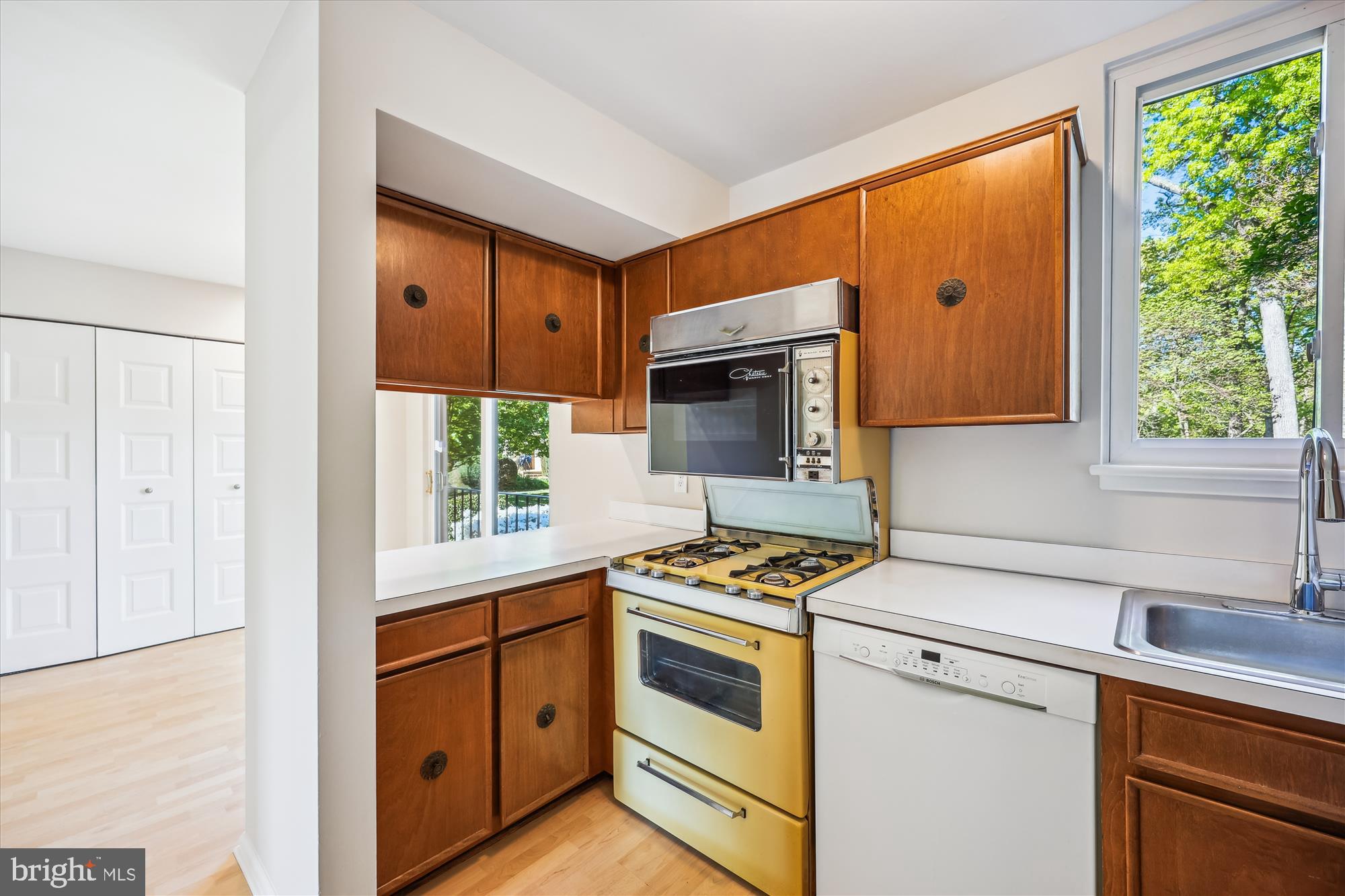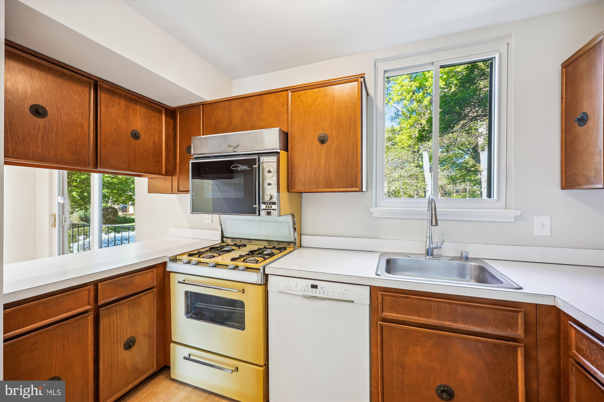 The kitchen is highlighted by eat-in table space framed by sliding glass doors with tranquil views. An open living/dining room combo, a porch, a balcony, a foyer, and a powder room provide ideal areas for everyday enjoyment and hosting.