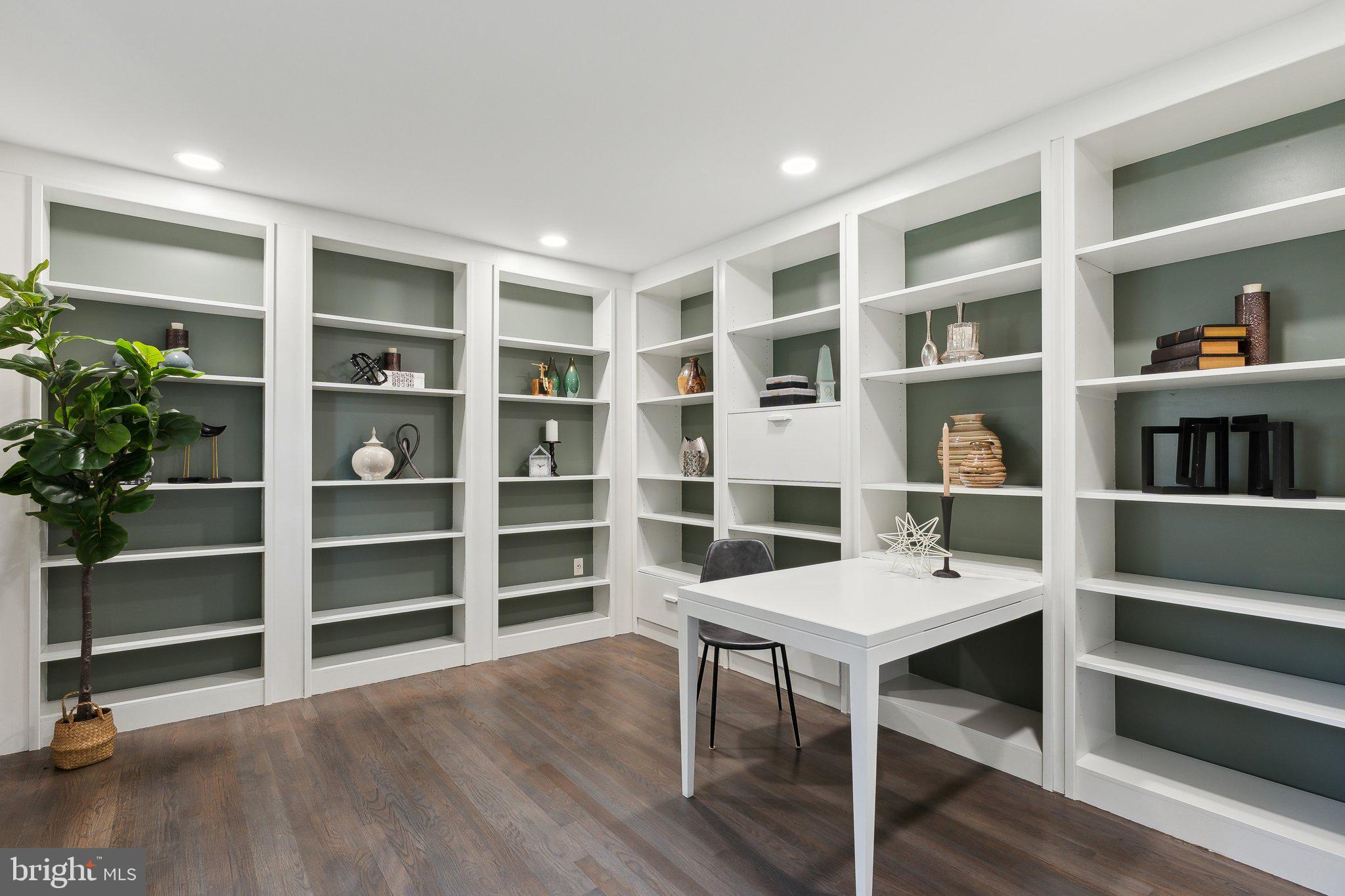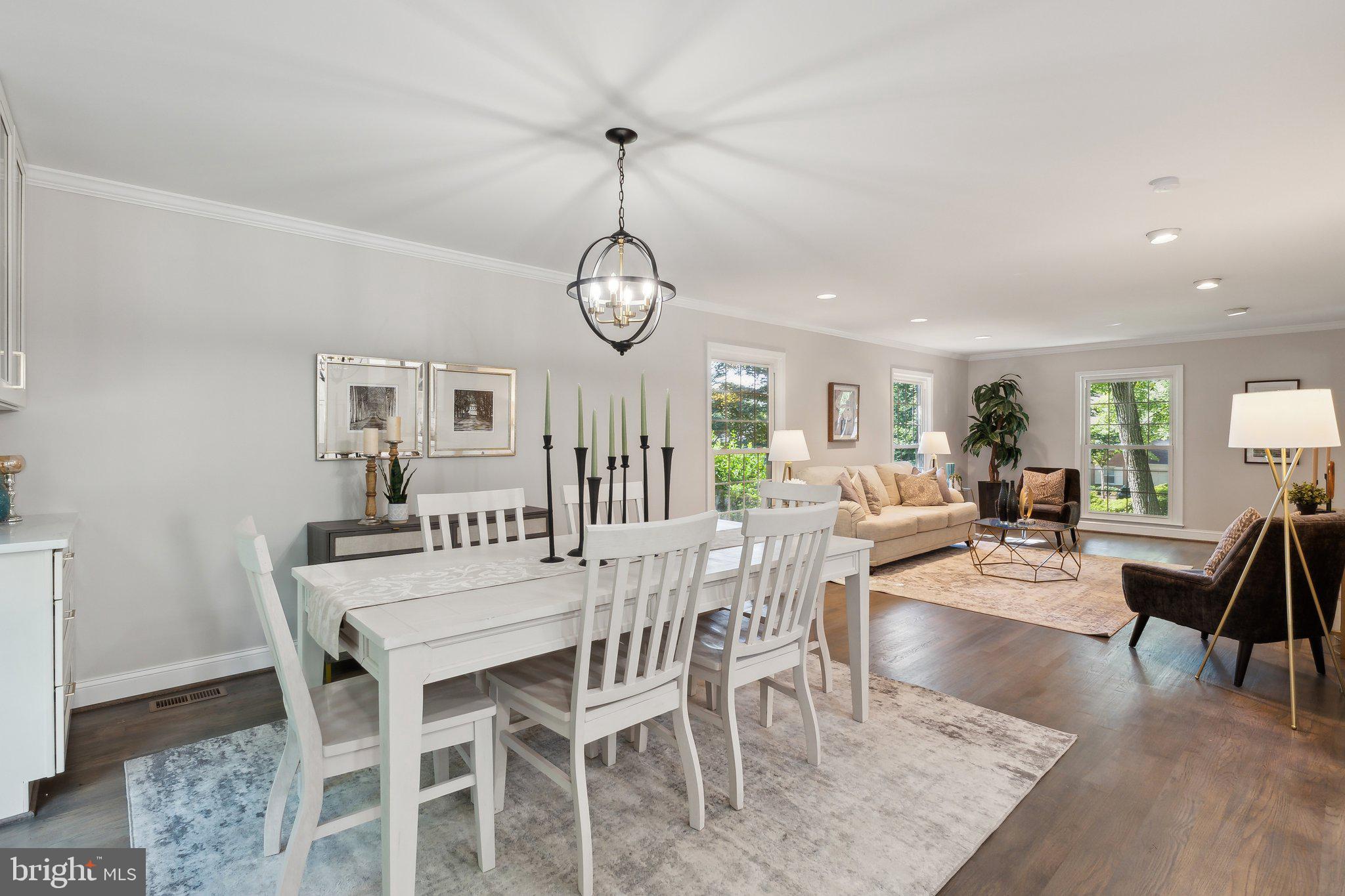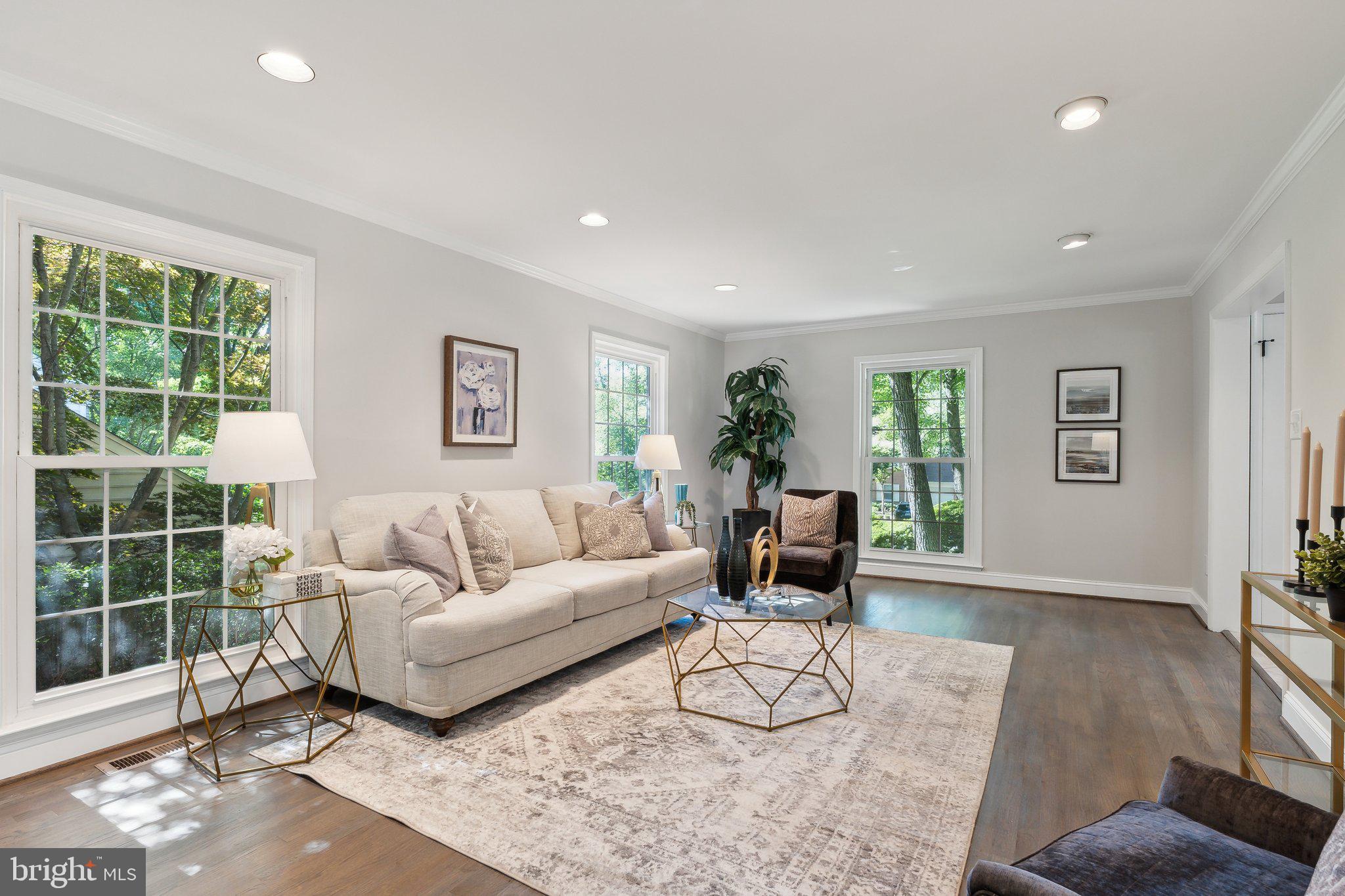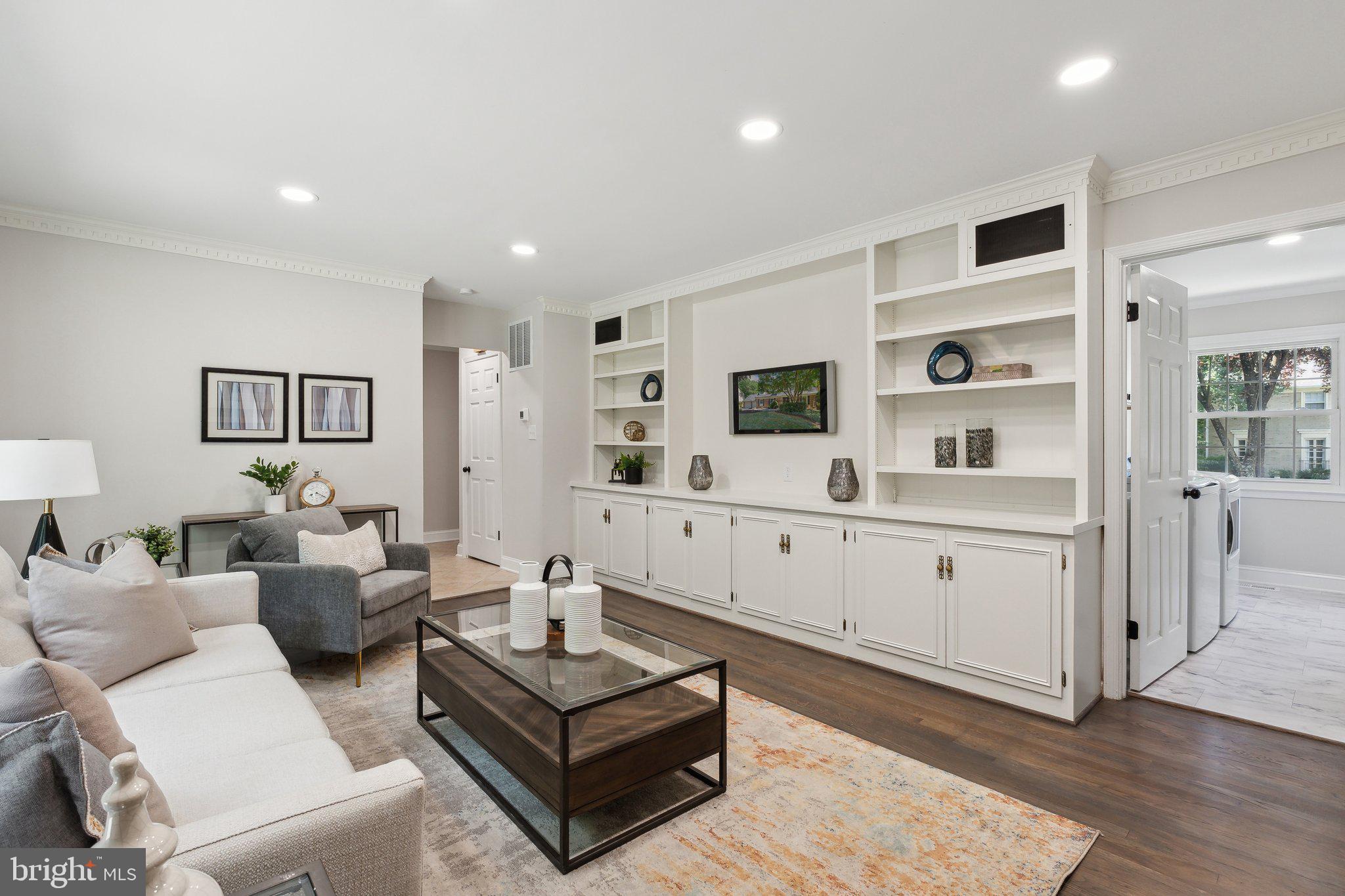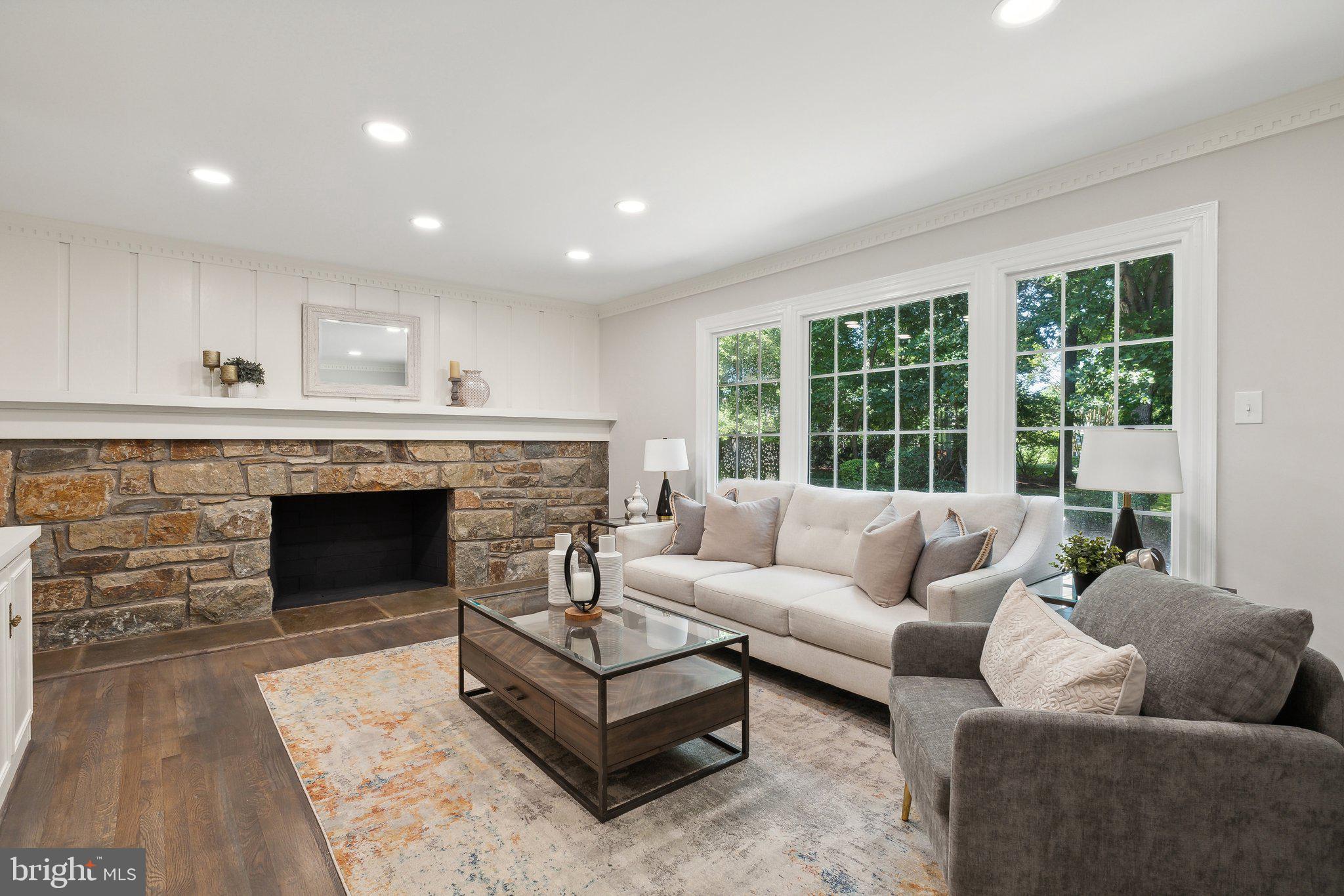 Step inside through the new exterior 3/4 glass door and be greeted by the large and inviting foyer leading into the main living areas. On the main level, you'll find a charming office/library with custom-built bookshelves, perfect for your home office or reading nook. Refinished hardwoods grace the living, dining, kitchen and family rooms on the main. The large and spacious living room offers ample space for entertaining or relaxing and provides a bright and inviting space to gather with family and friends. The dining room showcases beautiful glass-front cabinetry that complements the kitchen's aesthetic. The fully updated kitchen is a chef's paradise, boasting brand-new cabinetry, sleek quartz countertops, and sparkling stainless steel appliances. Whether you're whipping up a gourmet meal or enjoying a casual breakfast, this kitchen will make every moment special.