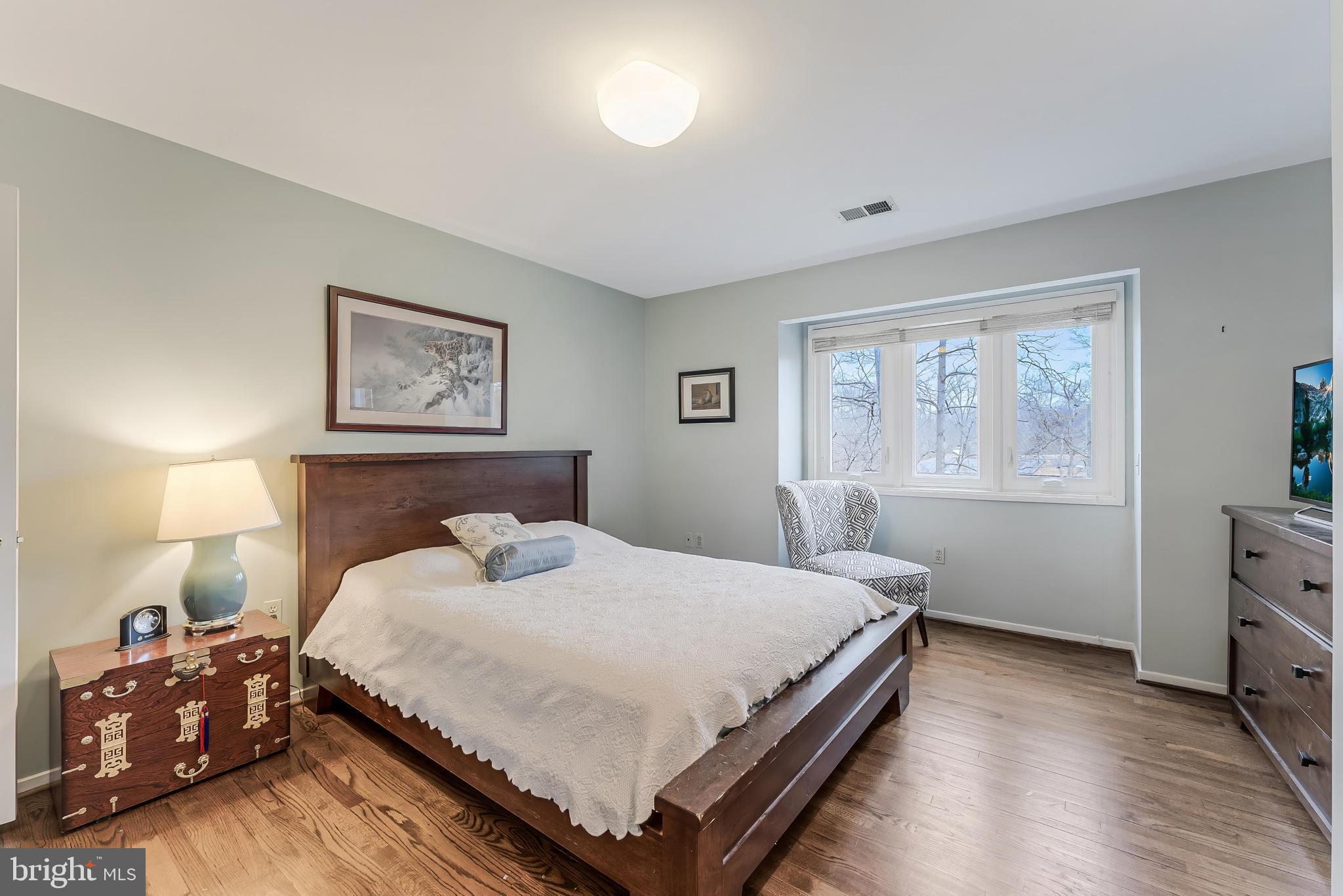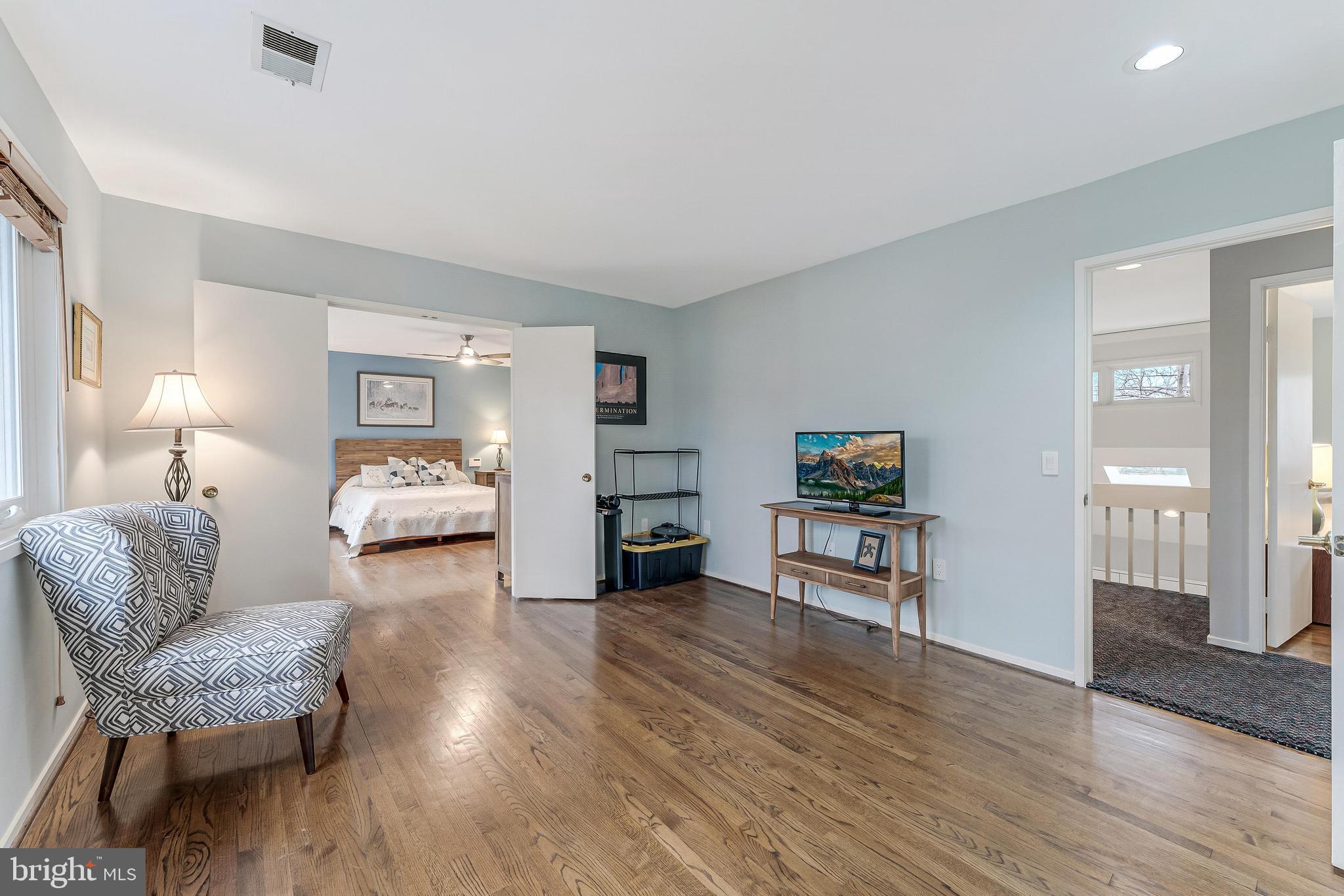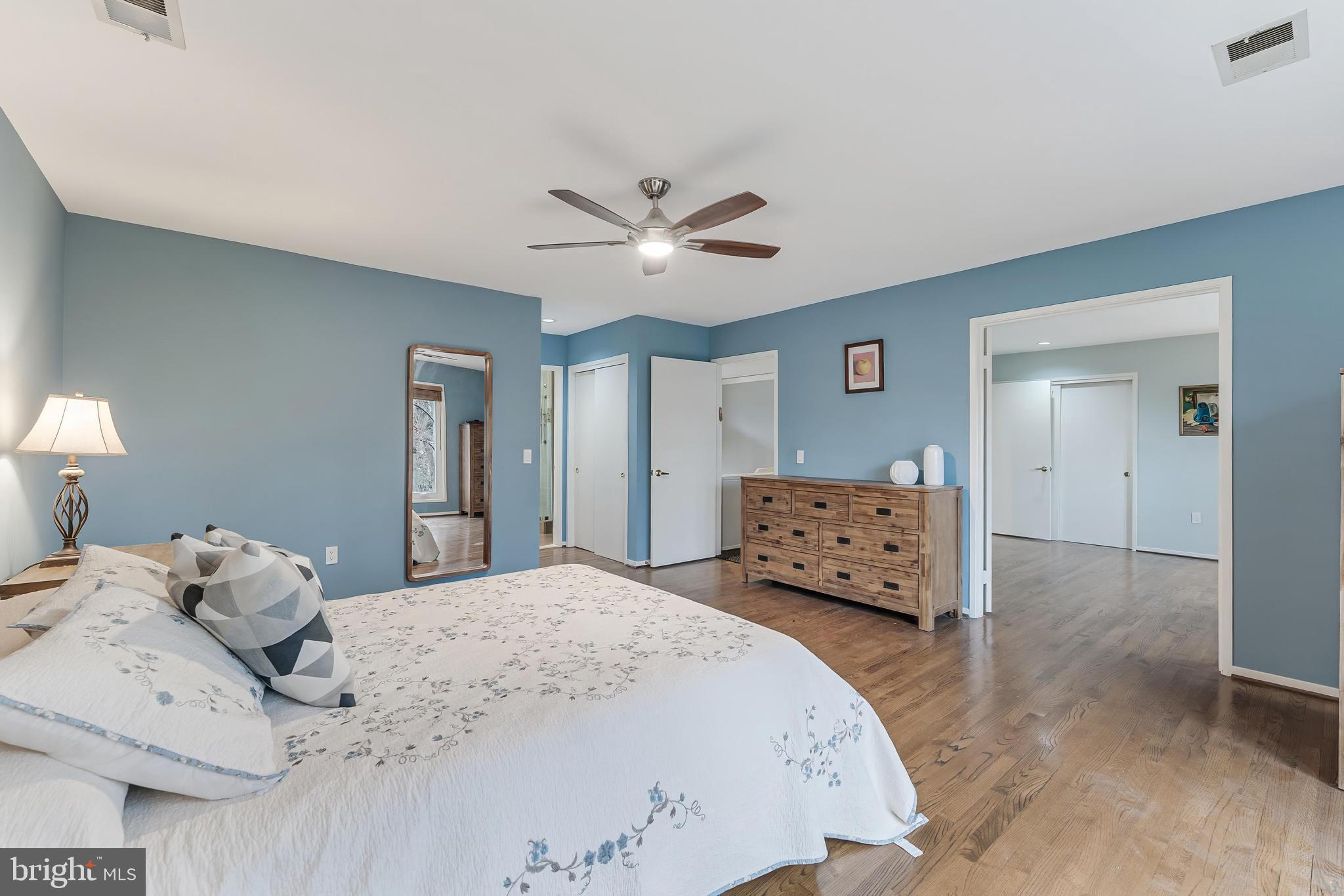 The luxurious owner's suite offers two custom closets, a separate sitting room, and a spa-like bath with double vanity, large walk-in shower with dual heads, and abundant storage. Upstairs are three additional spacious bedrooms, including one with an en-suite bath and a Jack & Jill bath with double vanity. A large fourth bedroom features vaulted ceilings, three oversized closets and hall access to rear spiral staircase.