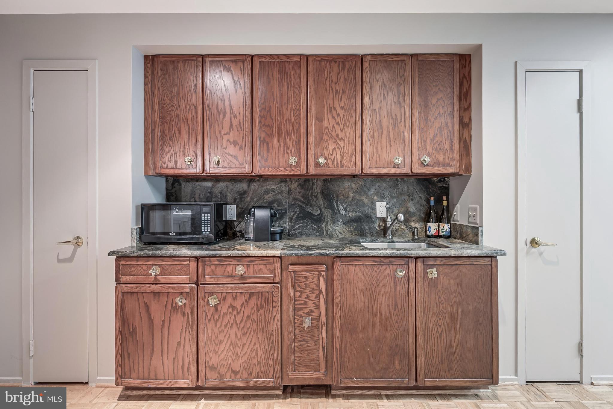 The daylight walk-out lower level offers expansive recreation space, three storage closets, a kitchenette, and an extra bedroom with a private full bath.